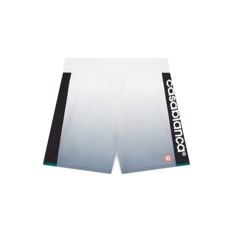 Los pantalones cortos de chándal con degradado plateado son una prenda deportiva confeccionada en tejido con degradado plateado que luce el logotipo Casablanca característico de la casa en el lateral. Se completan con una cintura elástica con cordón de ajuste, paneles negros en los laterales y bolsillos laterales en las costuras.