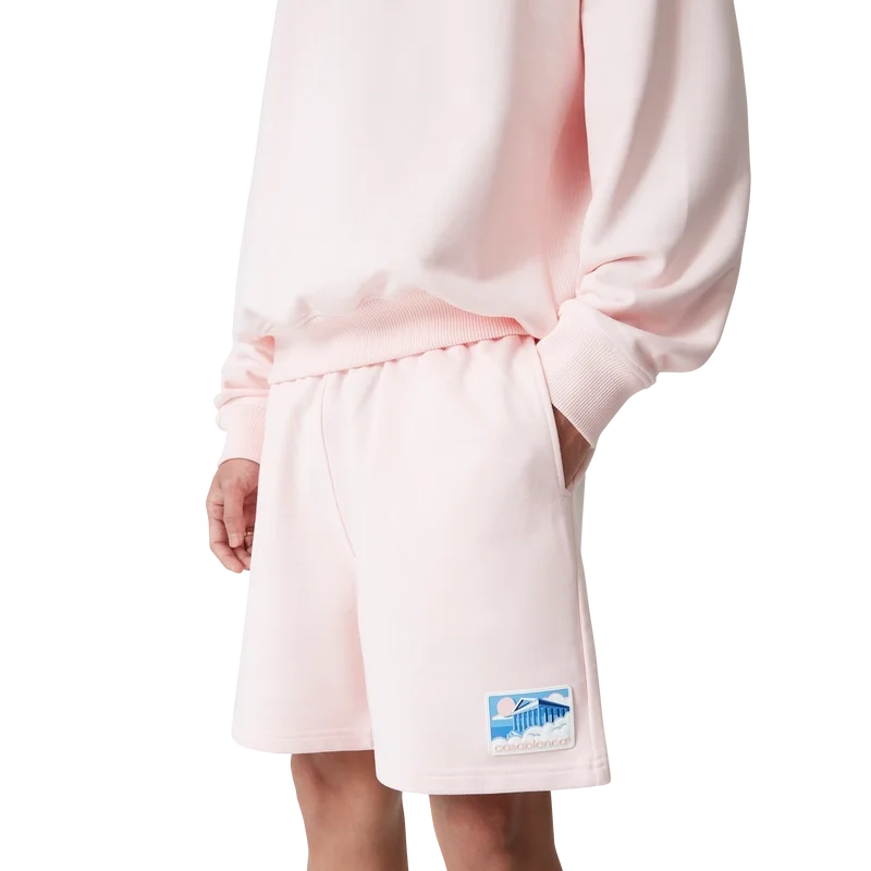 Los pantalones cortos de chándal Greek Temple presentan un diseño clásico en el tono rosa característico de la marca. Cuentan con un logotipo de parche, una cintura elástica, cordón con puntas doradas y un cierre de bola para una sujeción segura, bolsillos laterales en la costura y un bolsillo trasero de parche.
