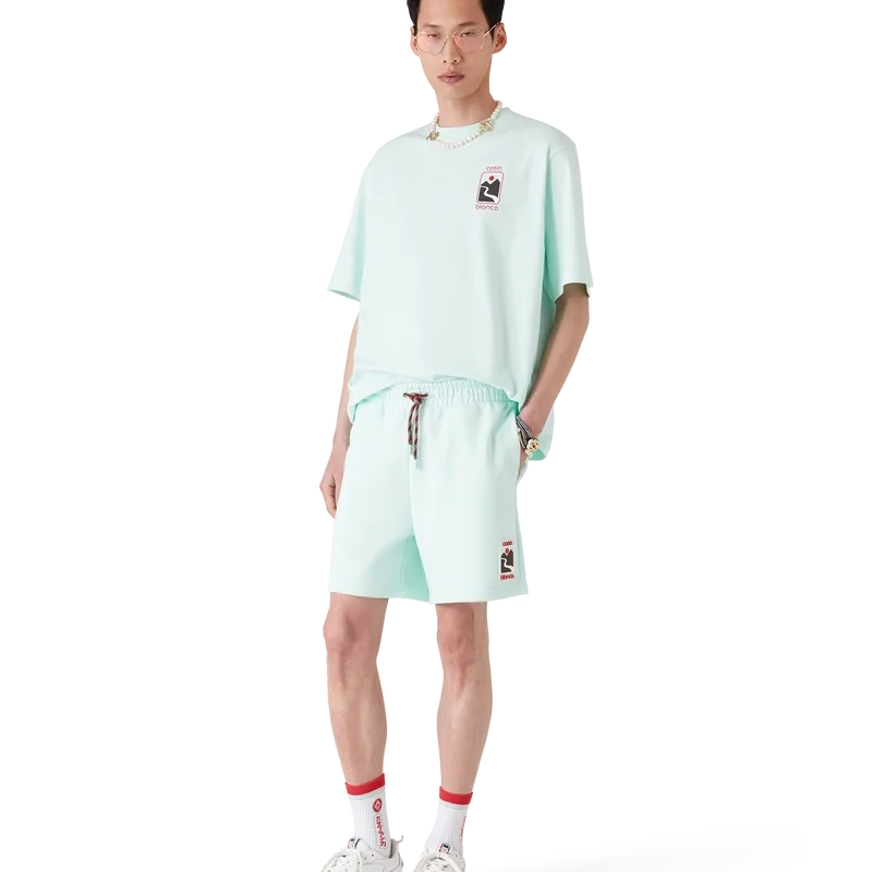 Los pantalones cortos de chándal Sunset Valley son una prenda deportiva confeccionada en tejido de jersey de algodón con el diseño de temporada de la casa reinterpretado para esta temporada. Cuentan con cintura elástica, cordón de ajuste con puntas doradas, bolsillos en las costuras y un bolsillo trasero de parche.