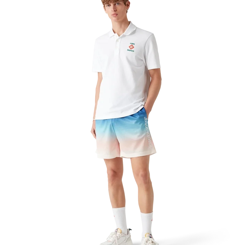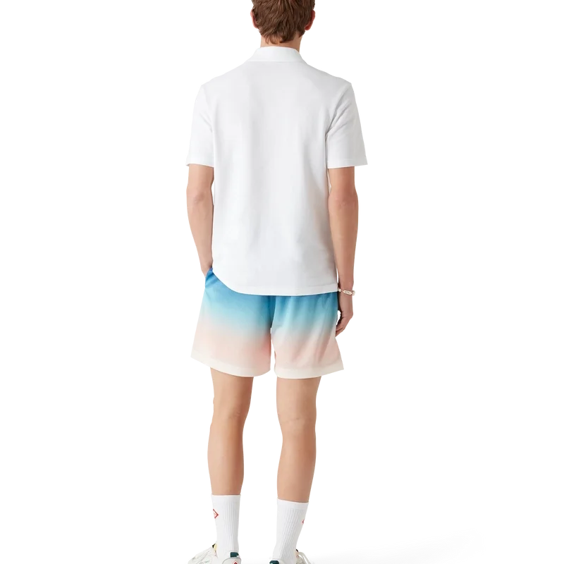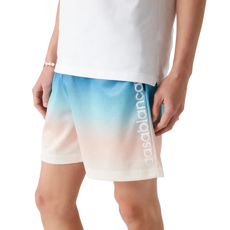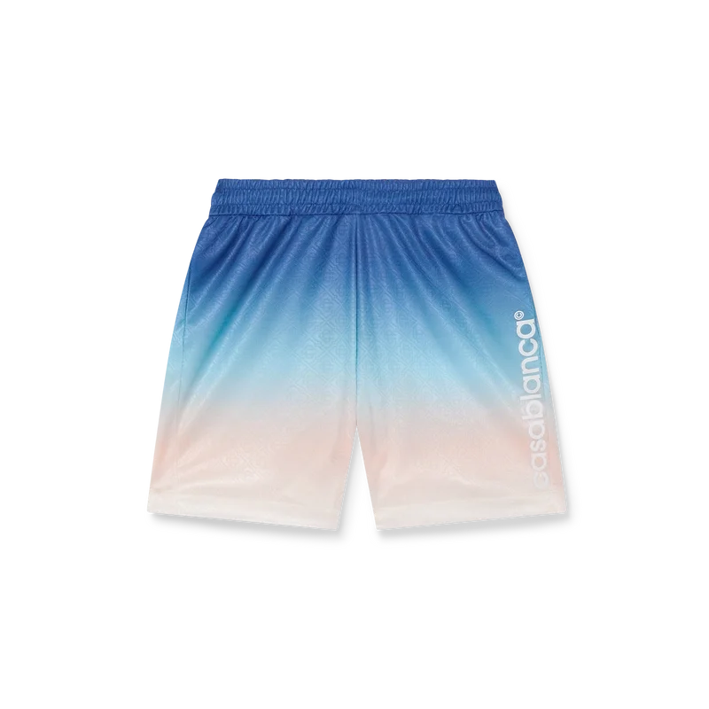 Los pantalones cortos de fútbol Gradient son un diseño deportivo que presenta una serie de colores degradados que enfatizan los temas centrales de nuestra marca. Confeccionados con un tejido de poliéster jacquard con monograma que incorpora el logotipo Casablanca característico de la casa en el lateral. Se completan con una cintura elástica con cierre de cordón y bolsillos laterales en las costuras.