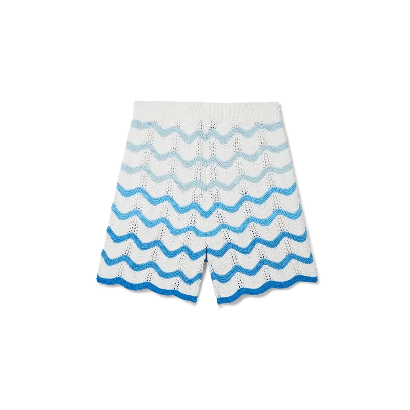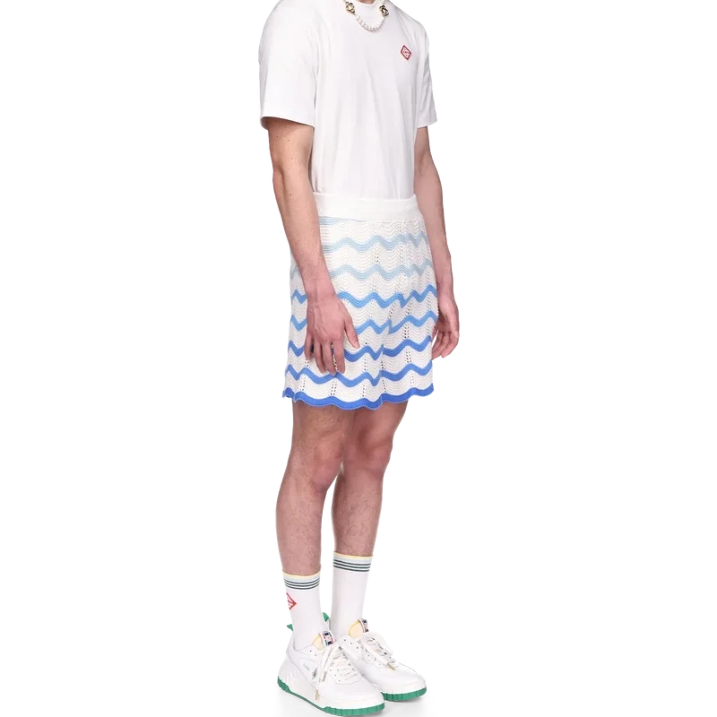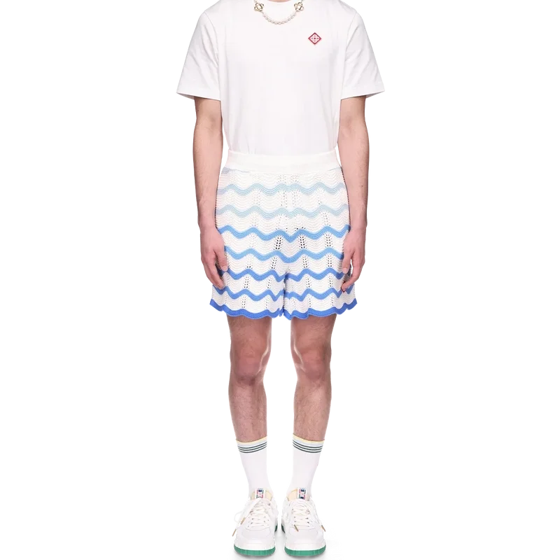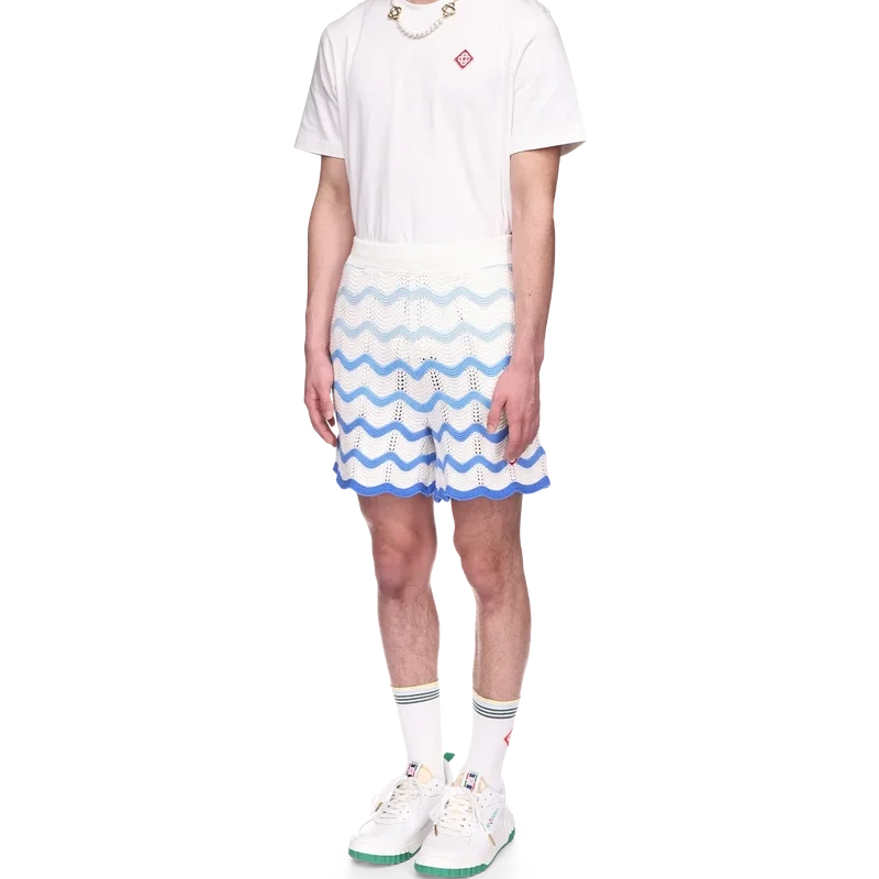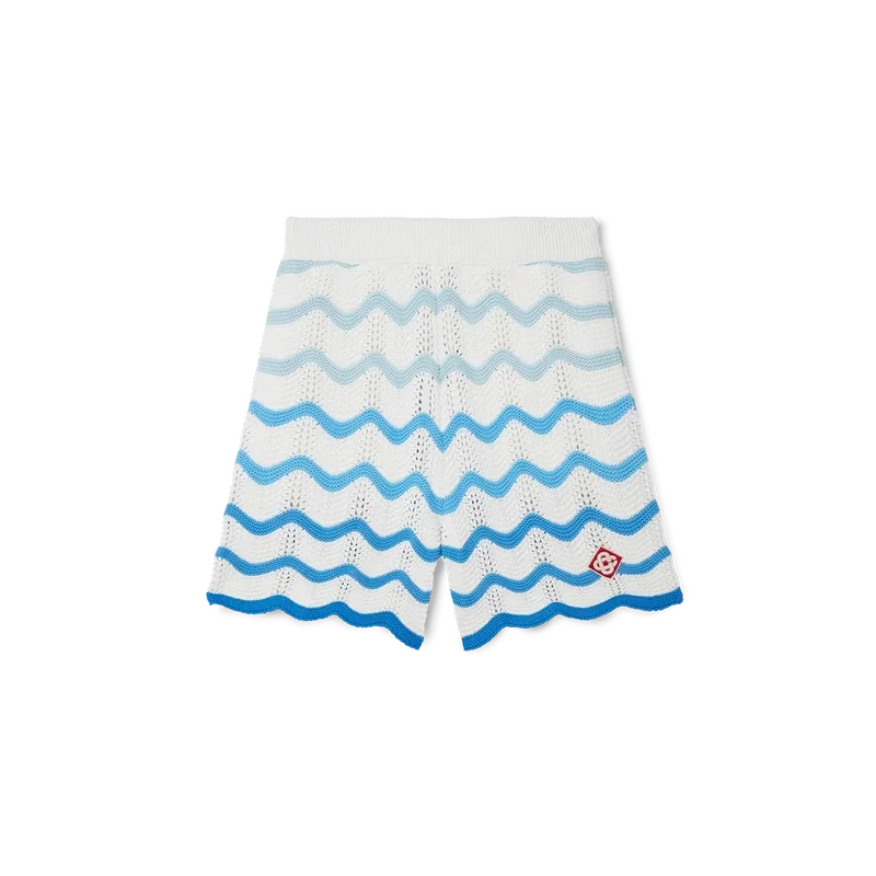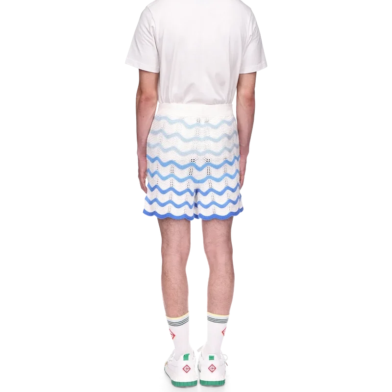Los pantalones cortos de ganchillo con degradado ondulado son un estilo emblemático de Casablanca confeccionado con un tejido de ganchillo de textura suave y tejido abierto. Acabados con un cierre de cordón interno, el logotipo del diamante de la casa y la etiqueta de la marca Casablanca.