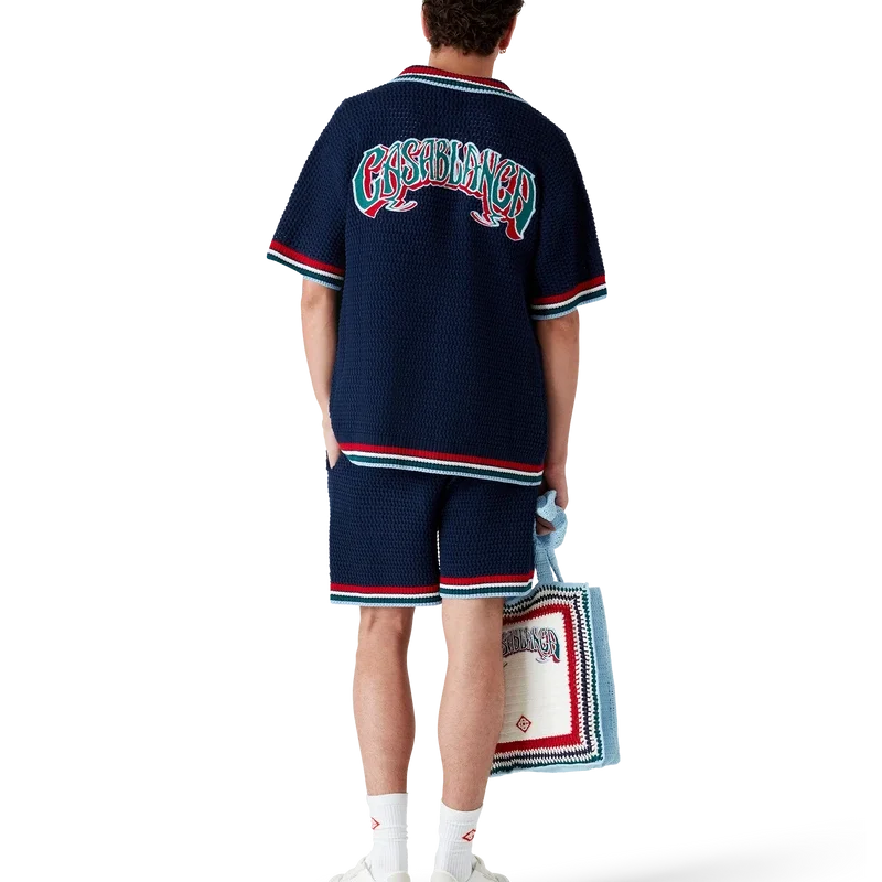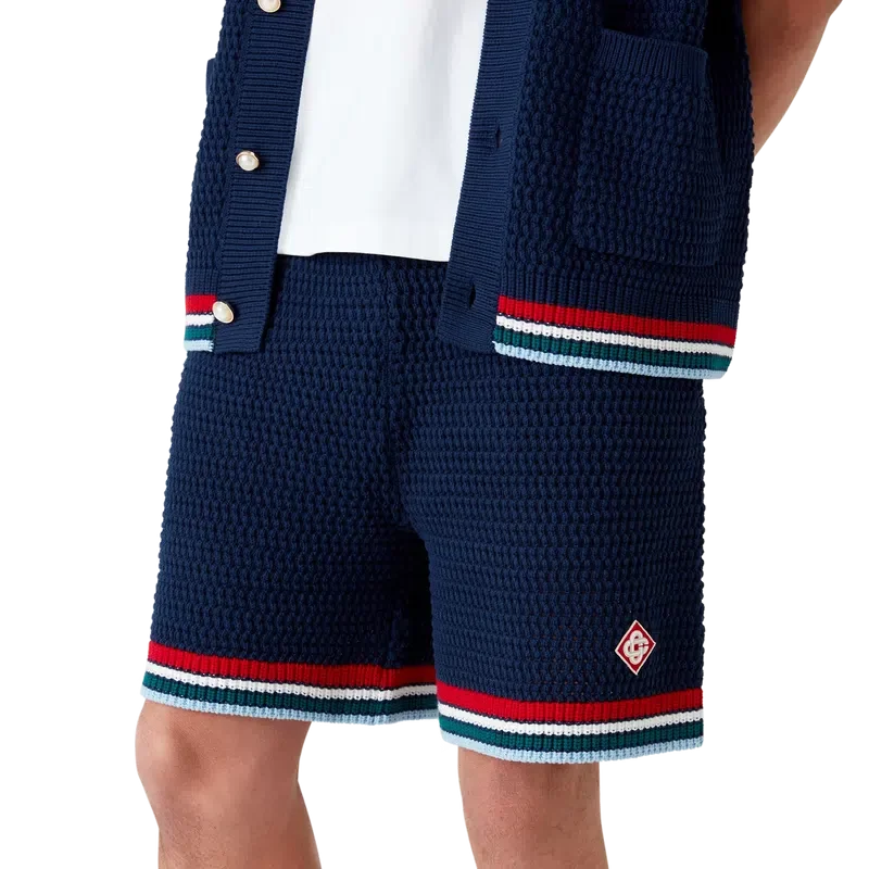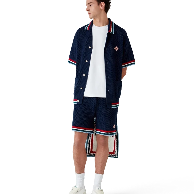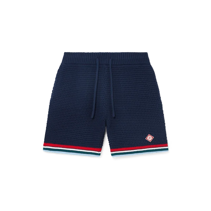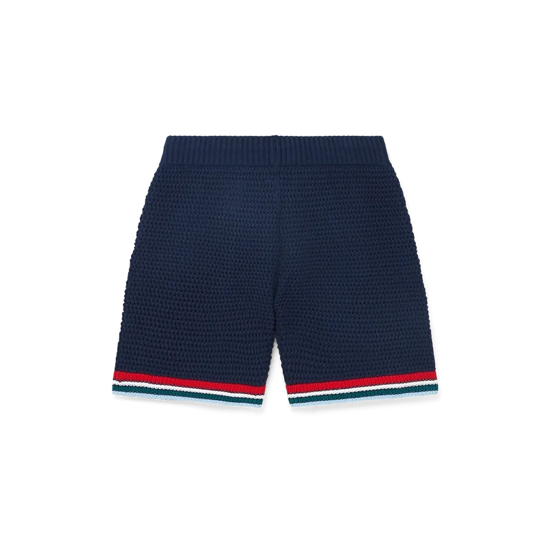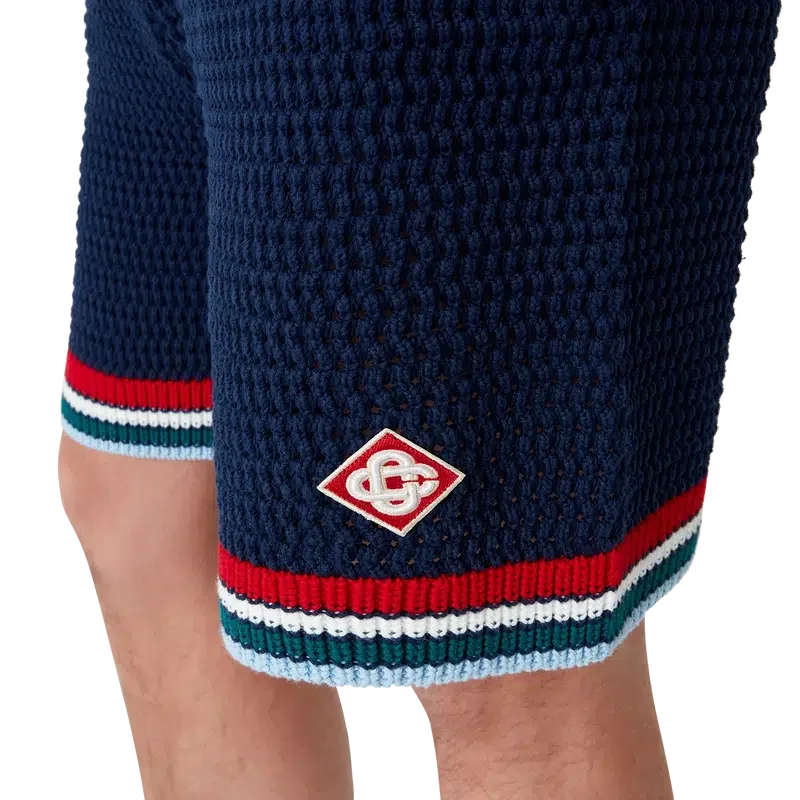 Los pantalones cortos de ganchillo góticos son un diseño de punto confeccionado en tejido de algodón de ganchillo y cuentan con el logotipo de diamante característico de la casa. Se completan con una cintura elástica, cierre con cordón, bolsillos en las costuras y detalle de borde rayado en el dobladillo.