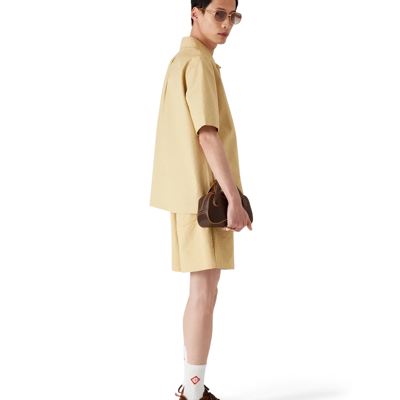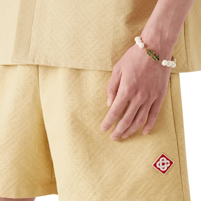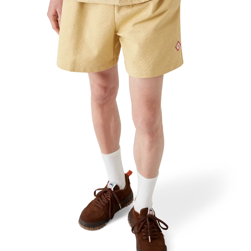 Los pantalones cortos de jacquard Monogram son un diseño clásico confeccionado con tejido de jacquard de algodón Monogram. Cuentan con cintura elástica, cierre con cordón con puntas doradas, un bolsillo trasero y bolsillos laterales en las costuras.