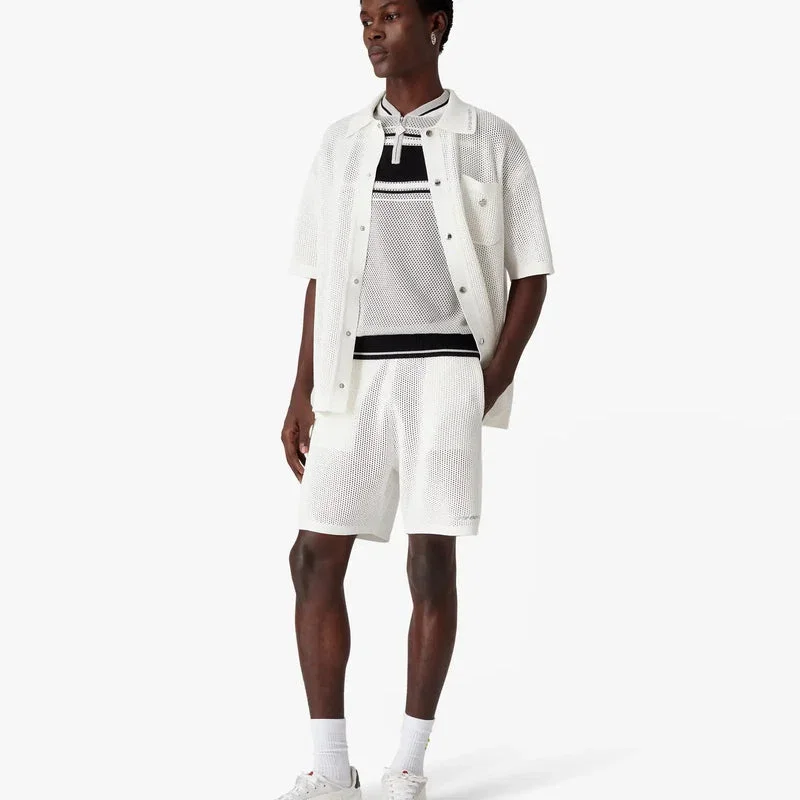 Los pantalones cortos de malla blancos presentan un diseño refinado, con el logotipo Warped de la marca en la pierna. Se completan con una cintura elástica, cierre con cordón, bolsillos en las costuras y detalle de dobladillo a rayas.