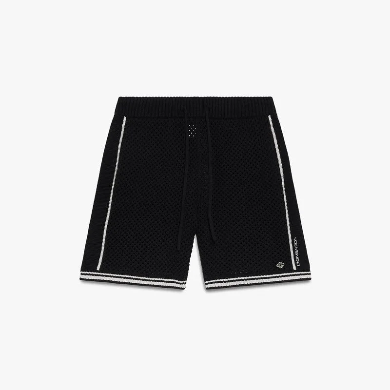 Los pantalones cortos de malla negros presentan un diseño refinado, con el remache con el logotipo Cc entrelazado y plateado de la casa en la pierna y detalles a rayas en los laterales. Se completan con una cintura elástica, cierre con cordón, bolsillos en las costuras y detalle de dobladillo a rayas.