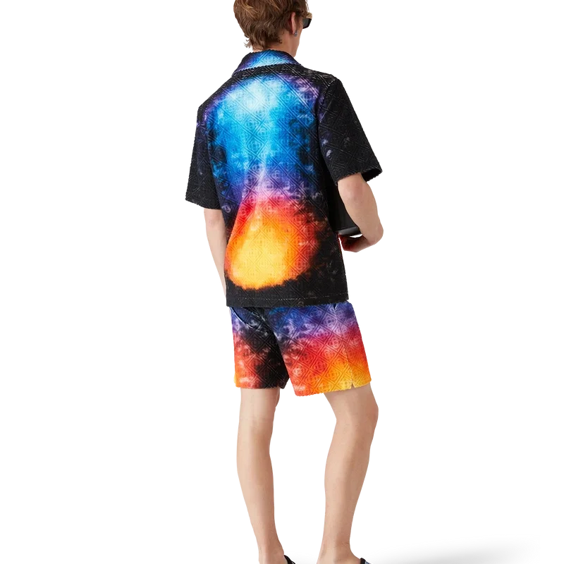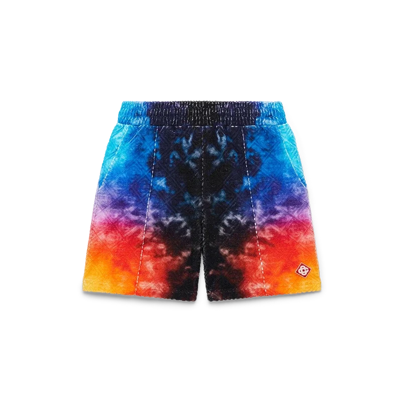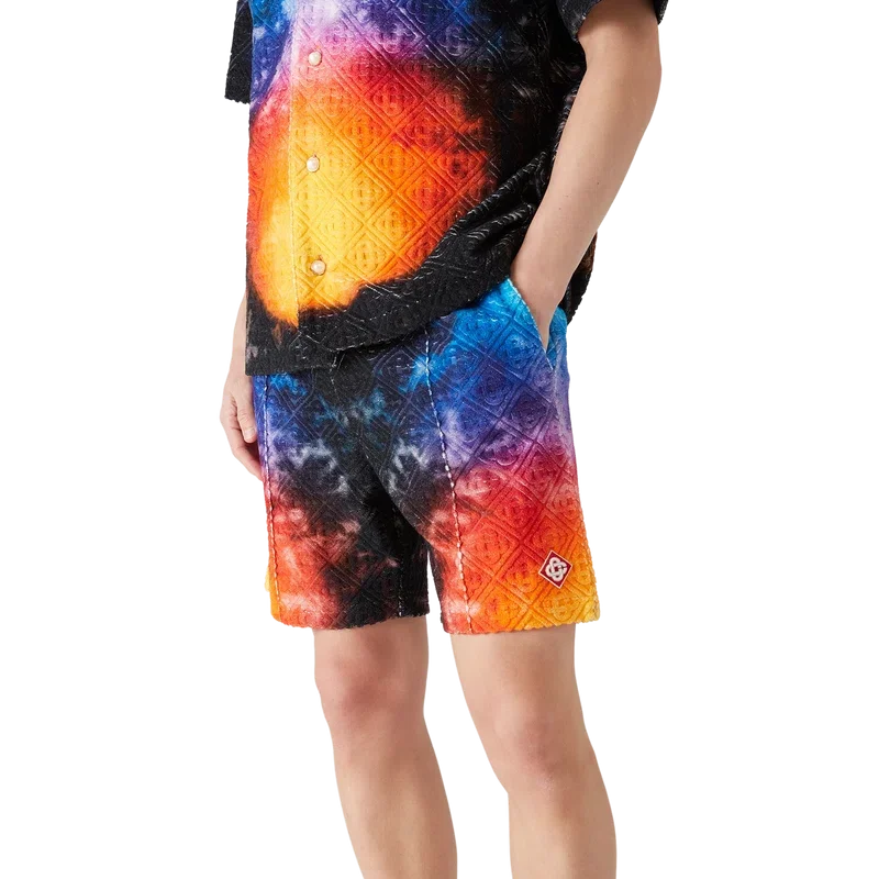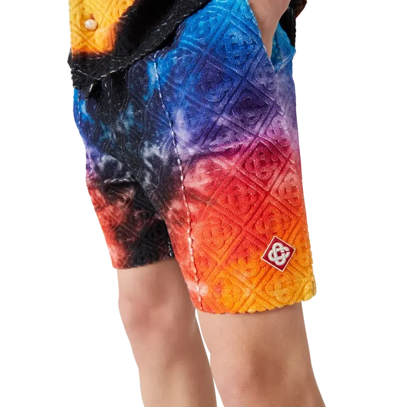 Los pantalones cortos de rizo con degradado presentan un estampado con el degradado de la temporada y están confeccionados con un tejido de rizo Monogram Gradient. Cuentan con una cintura elástica, cierre con cordón, costuras plisadas en la parte delantera, bolsillos laterales en las costuras y un bolsillo trasero ribeteado. Diseñados para combinarse con la camisa de rizo con degradado a juego.
