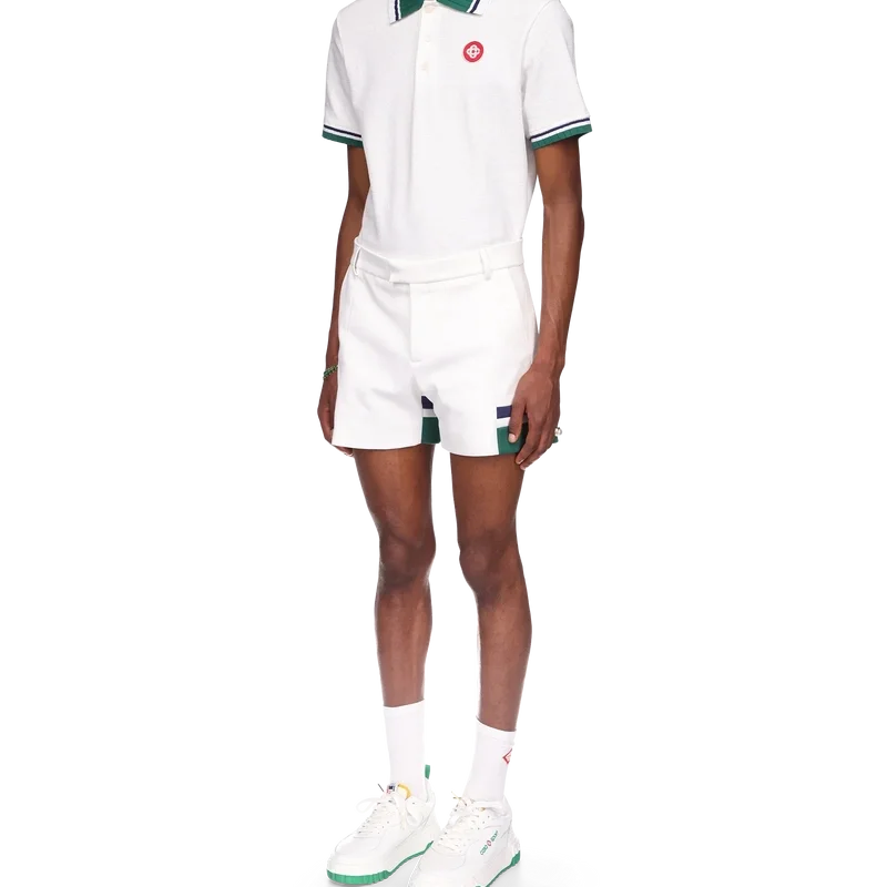 Los pantalones cortos de sastrería deportiva están confeccionados con un tejido de mezcla de algodón y cuentan con el logotipo de diamante característico de la casa.