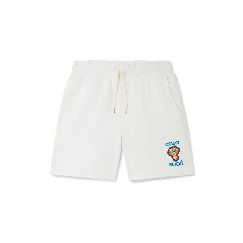 Los pantalones cortos de chándal bordados en blanco roto de Mind Vibrations presentan un diseño de temporada inspirado en la medicina de la Tierra y la capacidad de la naturaleza para sanar el espíritu. Confeccionados en algodón 100 % orgánico, el modelo corto llega por encima de la rodilla y cuenta con un cordón de cierre con puntas doradas y bolsillos laterales.