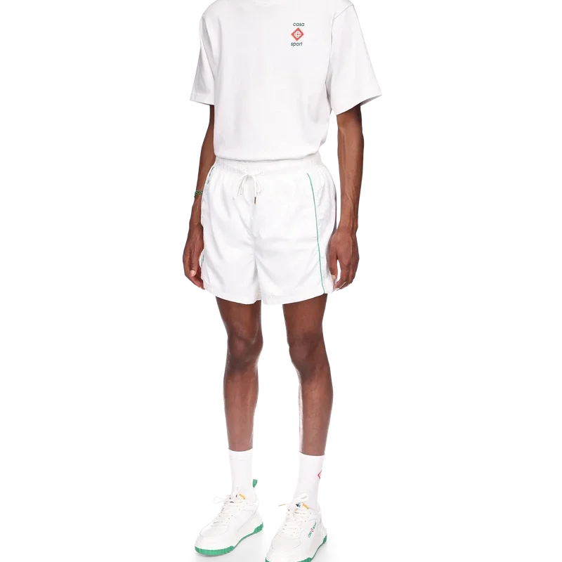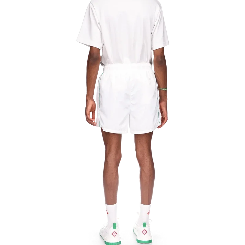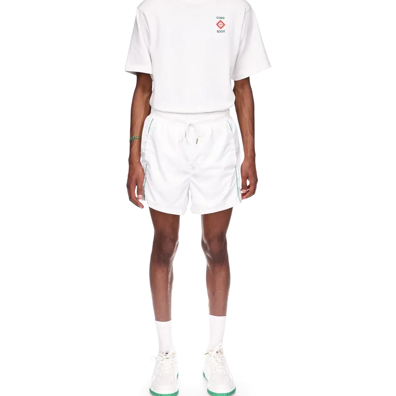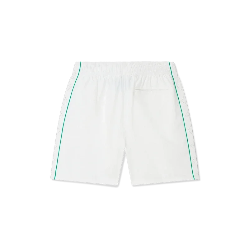 Los pantalones cortos deportivos con detalles láser son un diseño deportivo que presenta los detalles característicos de la casa: el Diamond Monogram y el monograma de corazones cortados con láser. Confeccionados con nuestro característico tejido de tafetán ligero, cuentan con una cintura elástica, cordón de ajuste con puntas doradas, bolsillos laterales, ribetes y un bolsillo trasero.
