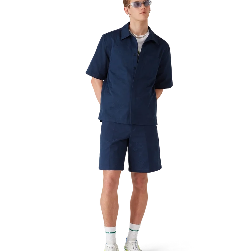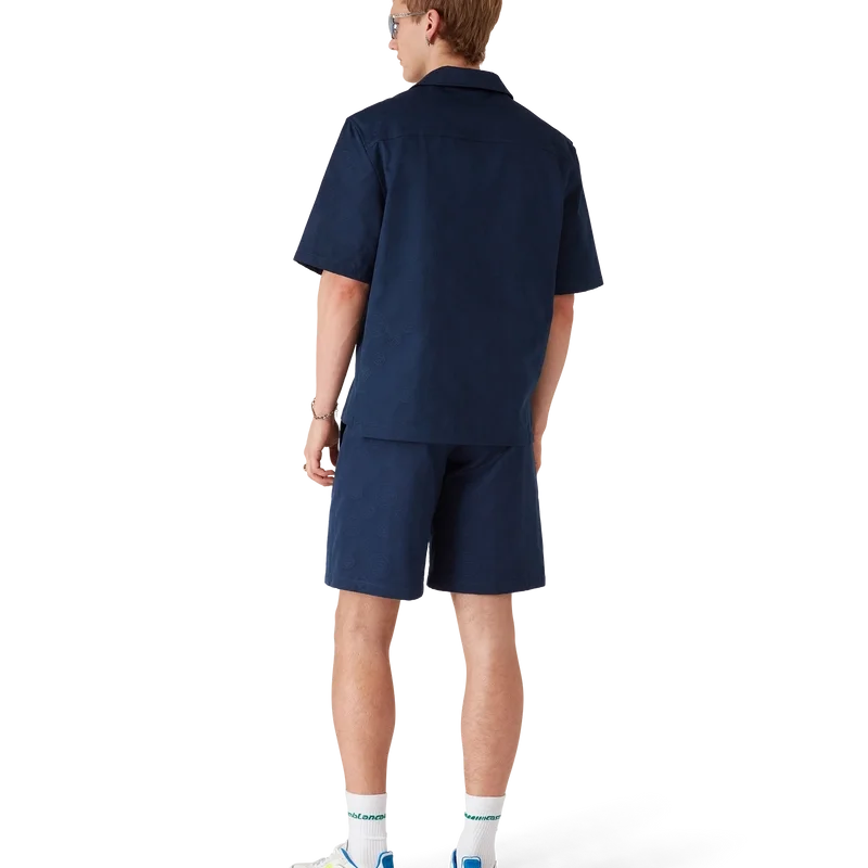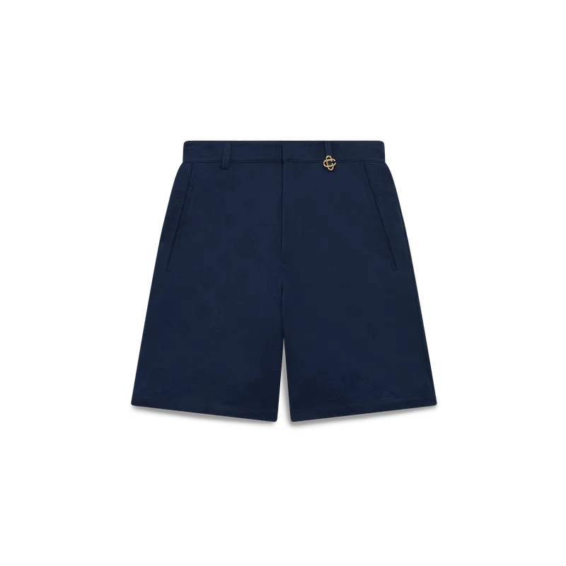 Los pantalones cortos Monogram azul marino presentan un diseño refinado hasta la rodilla con el icónico patrón Monogram de la casa. Se completan con una cintura, trabillas con remaches con el logotipo CC entrelazado de la casa, cierre de cremallera, bolsillos delanteros en diagonal y bolsillos traseros.