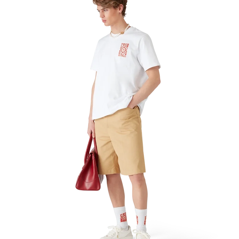Los pantalones cortos plisados de algodón tienen un diseño relajado, están confeccionados en tejido de algodón y cuentan con forro de algodón. Se completan con presillas para cinturón, cierre de cremallera, bolsillos delanteros y bolsillos traseros ribeteados con cierre de botón esmaltado con borde dorado y logotipo Cc entrelazado.