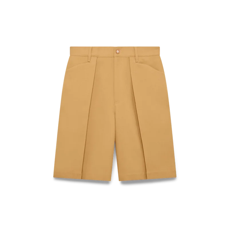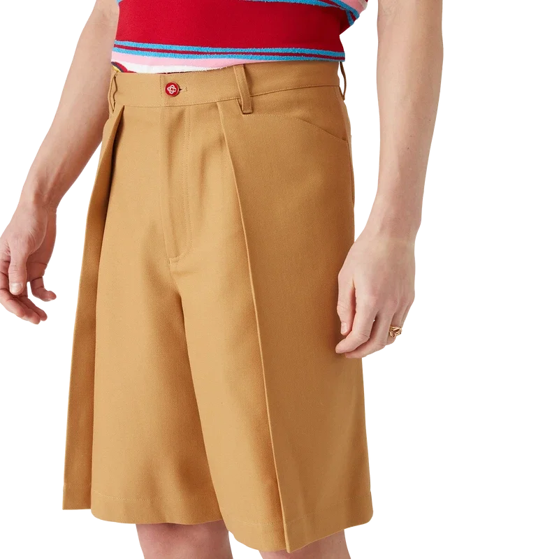 Los pantalones cortos plisados de lana tienen un diseño relajado, están confeccionados en sarga de algodón y cuentan con forro de algodón. Se completan con presillas para cinturón, cierre de cremallera, bolsillos delanteros y bolsillos traseros con ribete, con cierre de botón esmaltado con el logotipo CC entrelazado y borde dorado.