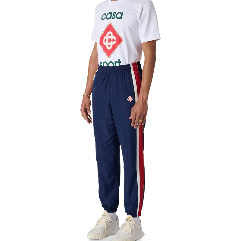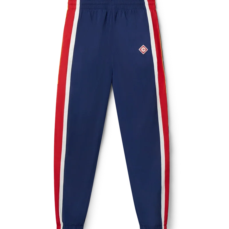 Los pantalones deportivos con paneles Arch son unos pantalones deportivos de estilo nostálgico confeccionados en tejido de tafetán de poliéster con paneles en tonos blanco, rojo y azul marino. Se completan con cordones de cierre con puntas doradas, puños elásticos y bolsillos laterales. Diseñados para un ajuste clásico con el logotipo del Diamond Monogram de Casablanca Paris bordado en la pierna izquierda.