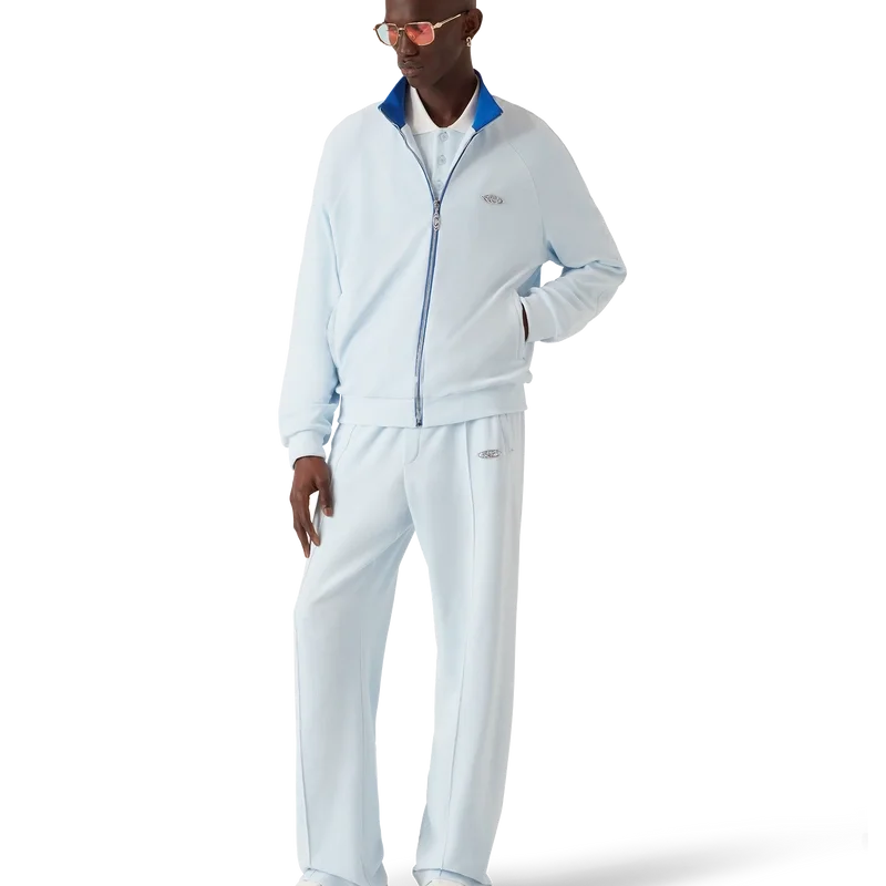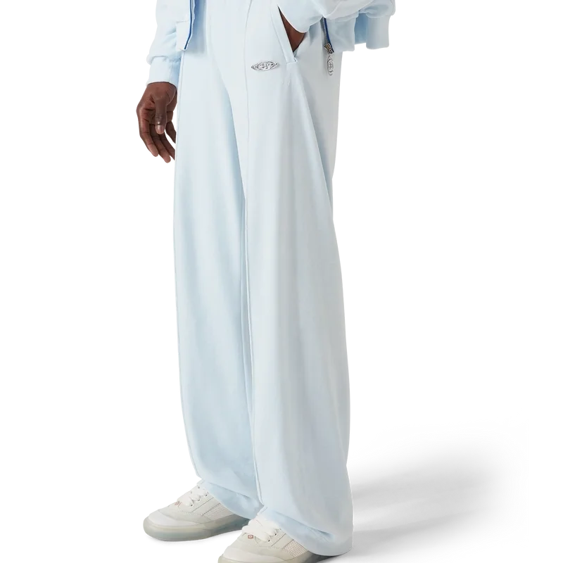 Los pantalones deportivos de terciopelo son un diseño deportivo de pierna recta que luce el logotipo Warped de la casa. Cuentan con una cintura elástica, cierre con cordón, bolsillos delanteros ribeteados, un bolsillo trasero ribeteado con cierre de cremallera y costuras plisadas en la parte delantera.