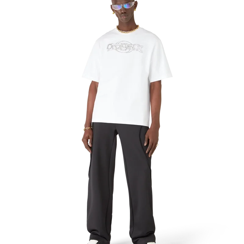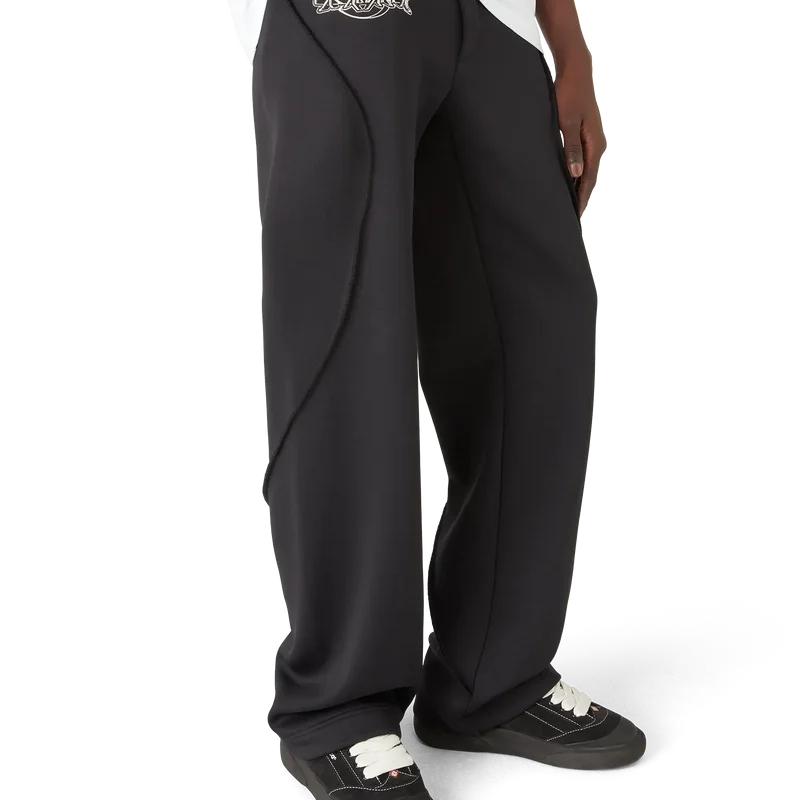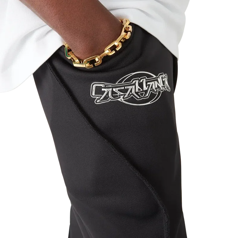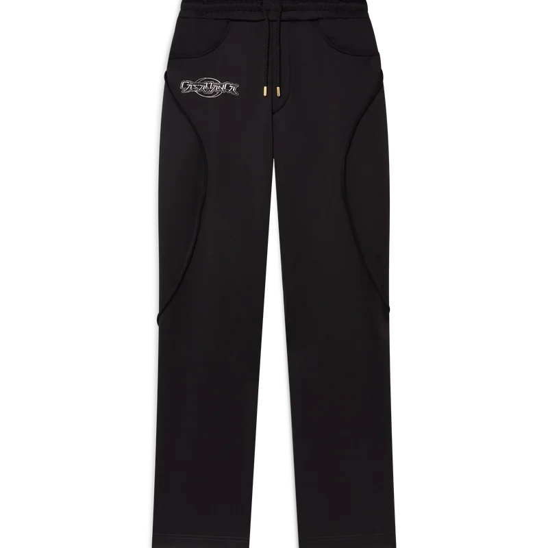 Los pantalones de chándal oversize con paneles tienen un diseño de pierna recta y lucen el logotipo metálico de la casa. Se completan con una cintura elástica, cordón de ajuste con puntas doradas, detalles de paneles cosidos, bolsillos delanteros inclinados y un bolsillo trasero ribeteado con cierre de cremallera.