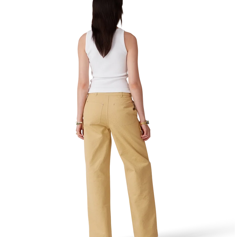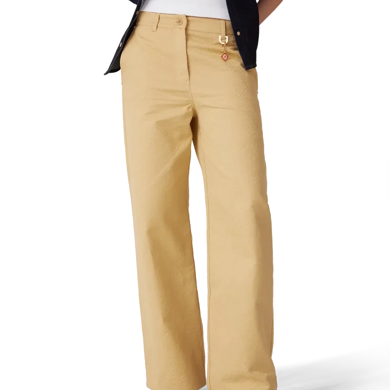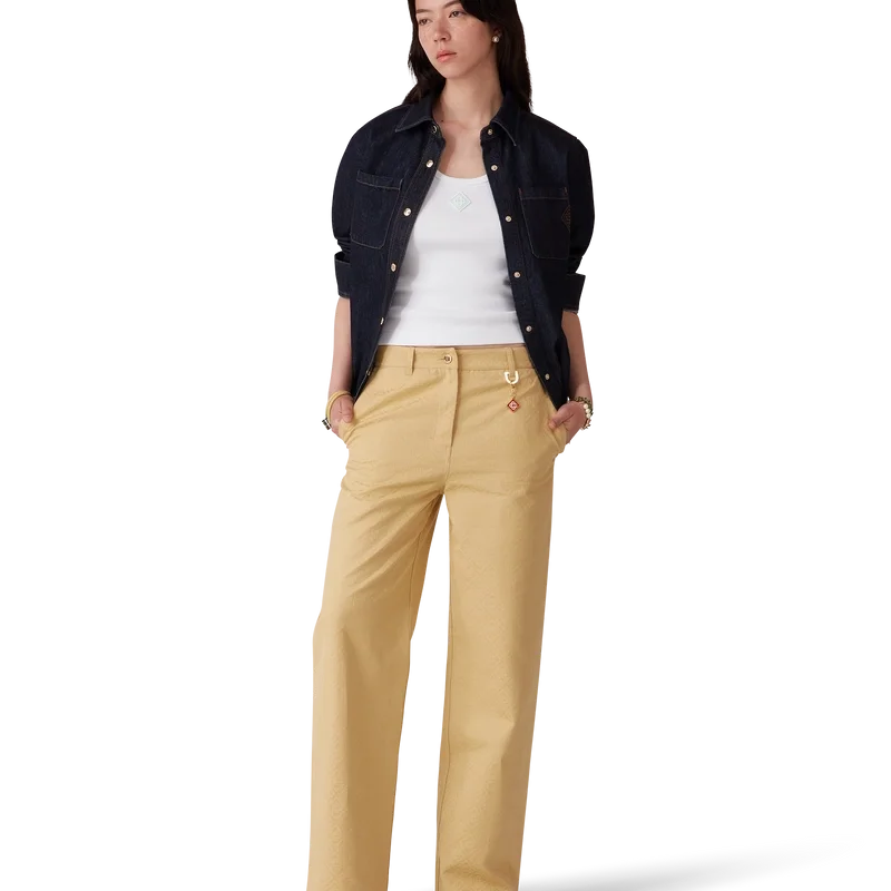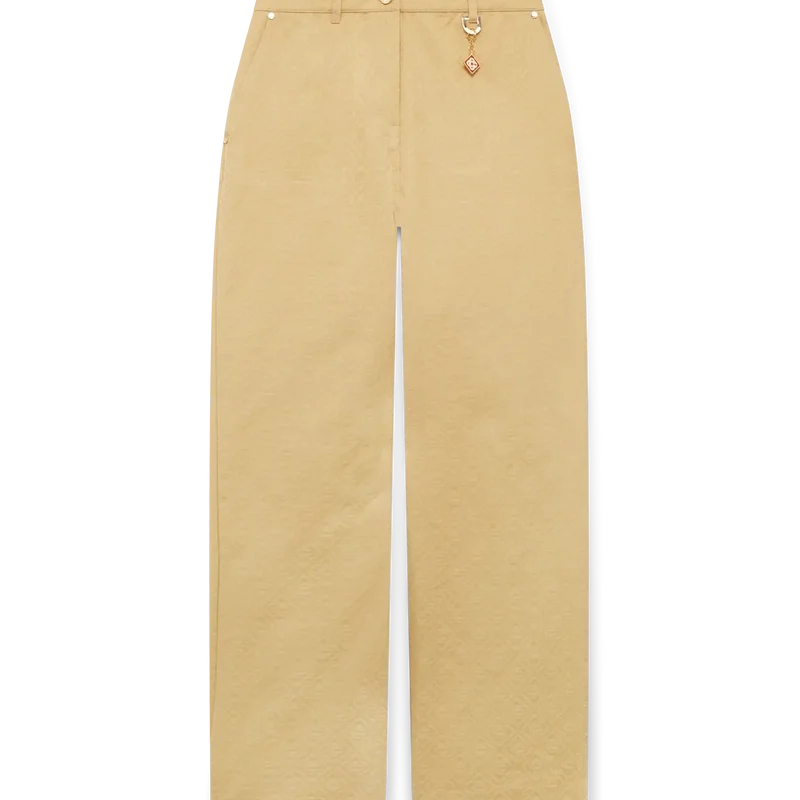 Los pantalones de jacquard de algodón con monograma presentan un diseño de pierna recta con el emblemático monograma CC entrelazado de la casa, confeccionado en tejido de jacquard de algodón. Se completan con cierre de cremallera, cinturilla, trabillas con anilla en D y el emblemático logotipo de diamante, herrajes dorados con el logotipo de la marca, bolsillos delanteros inclinados y bolsillos traseros de parche.