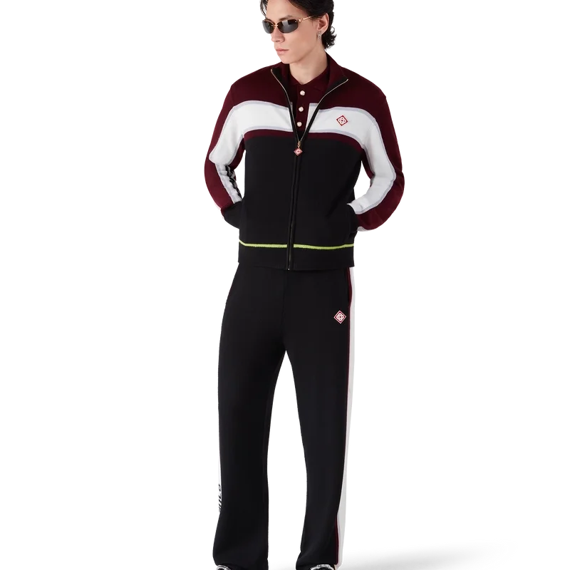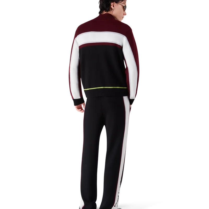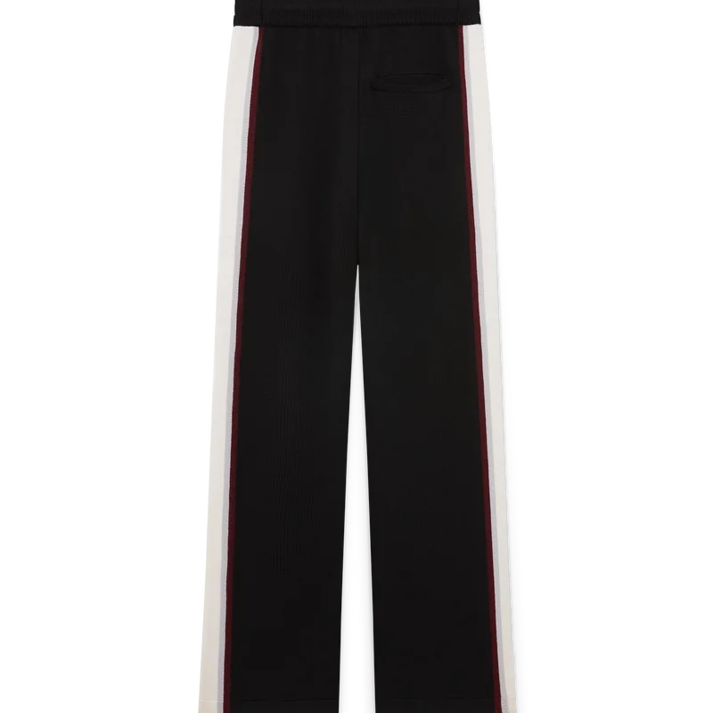 Los pantalones de merino a rayas presentan un diseño sofisticado confeccionado en lana merino con un tejido de punto texturizado. Acabados con una cintura elástica y una silueta holgada que equilibra la comodidad deportiva con una sastrería refinada.