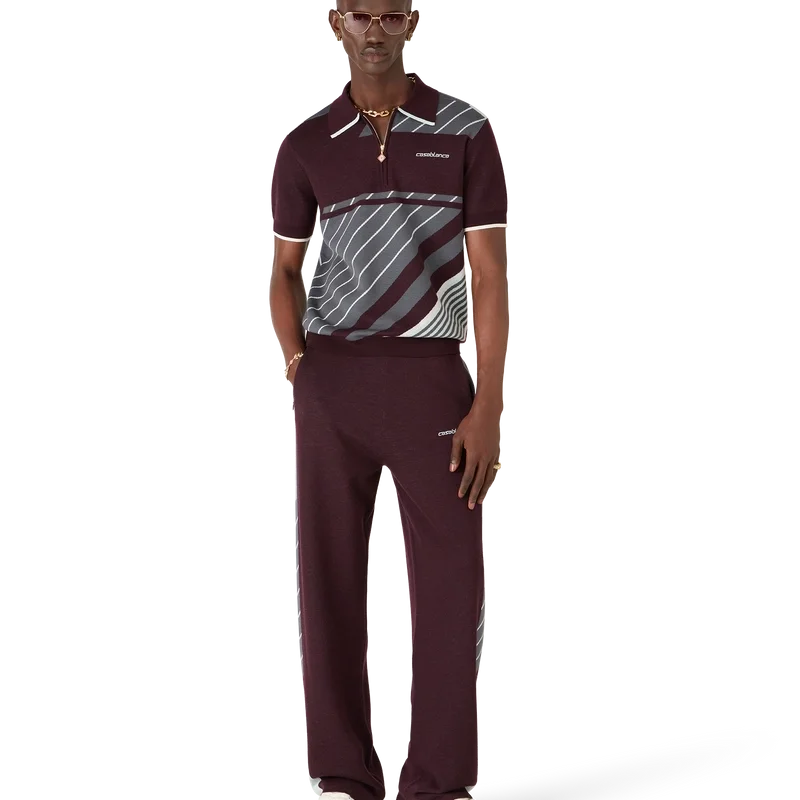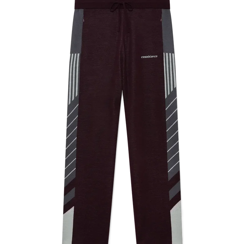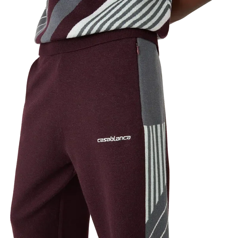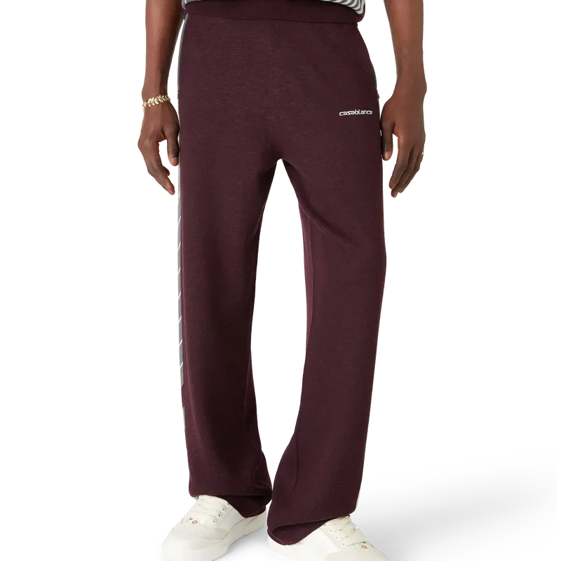 Los pantalones de tenis Merino Diagonal son un diseño de punto de pierna recta con el logotipo de Casablanca bordado. Se completan con una cintura elástica, bolsillos laterales en la costura con cierre de cremallera, detalles de rayas diagonales a lo largo de los costados y cierre con cordón.