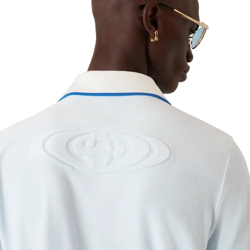 El polo de manga corta de terciopelo es un diseño clásico que presenta el logotipo Warped de la casa. Se completa con cierre de botones, botones de corozo con el logotipo entrelazado CC característico y un cuello acanalado en contraste.