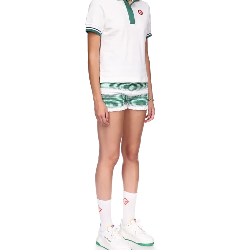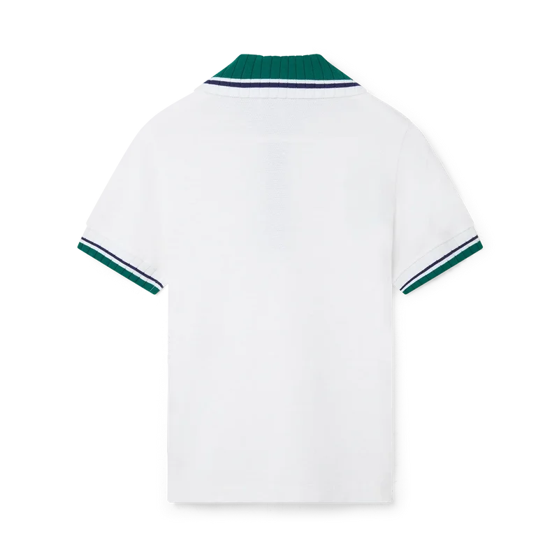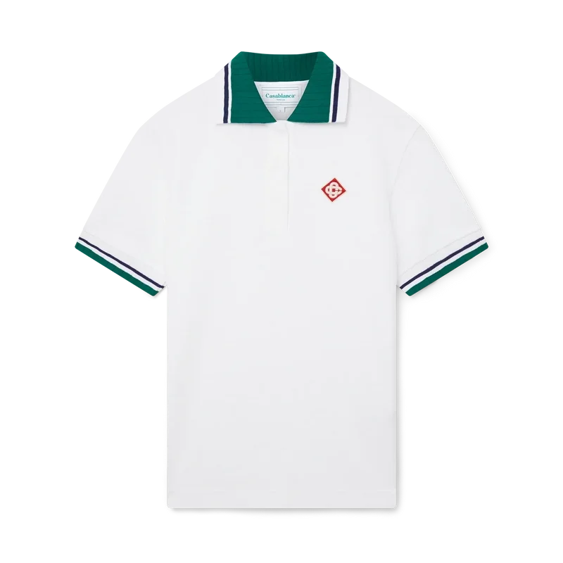 El polo de piqué es un modelo clásico de manga corta que cuenta con el parche con el logotipo de rombos característico de la casa. Confeccionado en tejido de piqué de algodón orgánico, con cuello y puños con detalles en contraste, cierre con tapeta de tres botones y etiqueta con la marca Casablanca