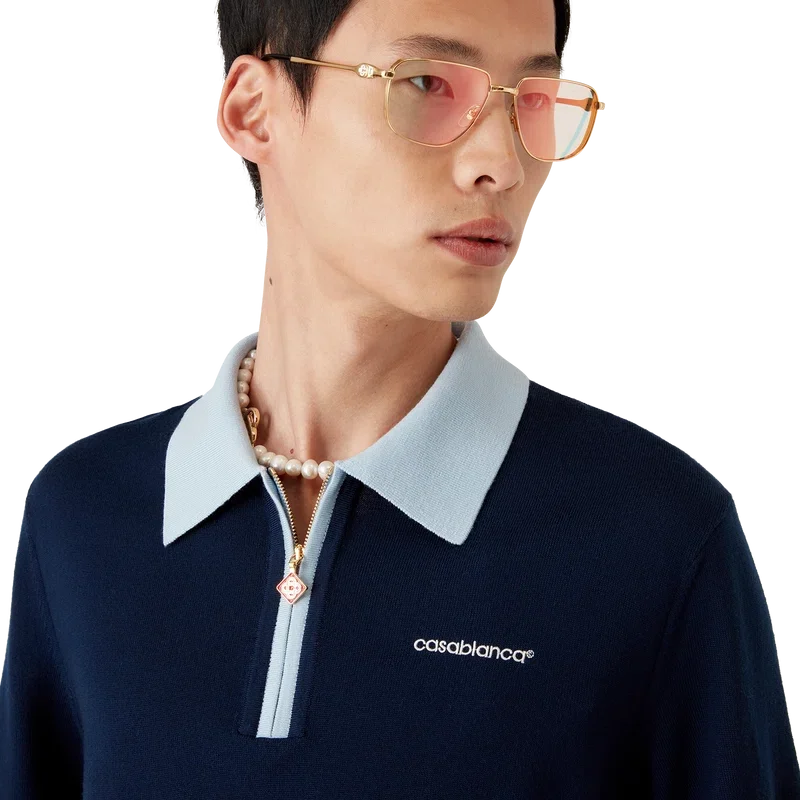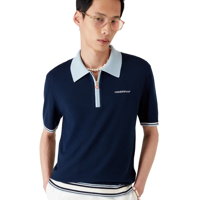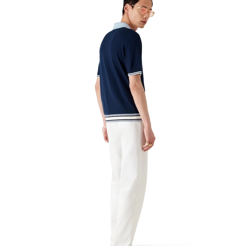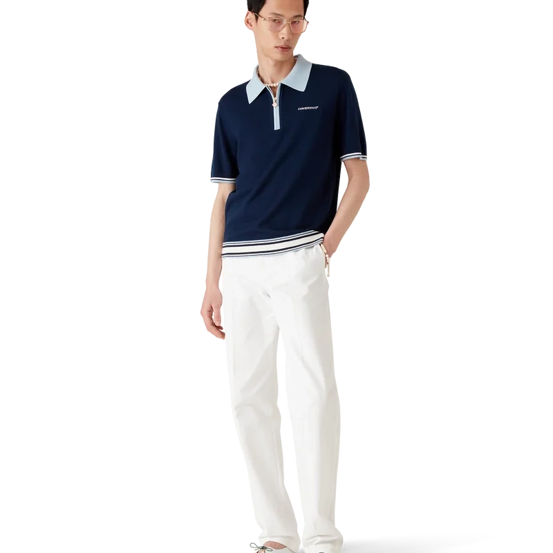 Los pantalones cortos de tenis de merino son un diseño de punto confeccionado con tejido de lana merino. Contienen cierre de cremallera, lengüeta de cremallera con el emblemático logotipo de diamante, detalles de rayas en el dobladillo y los puños, cuello y tapeta acanalados en contraste, y el logotipo Casablanca de la casa.
