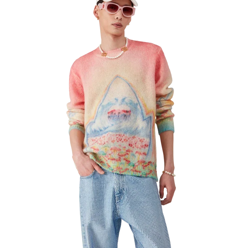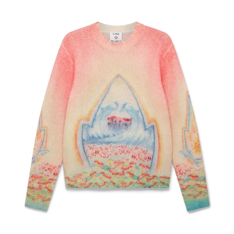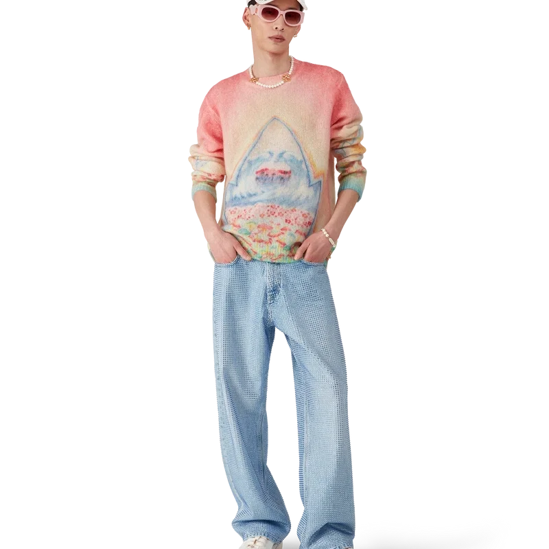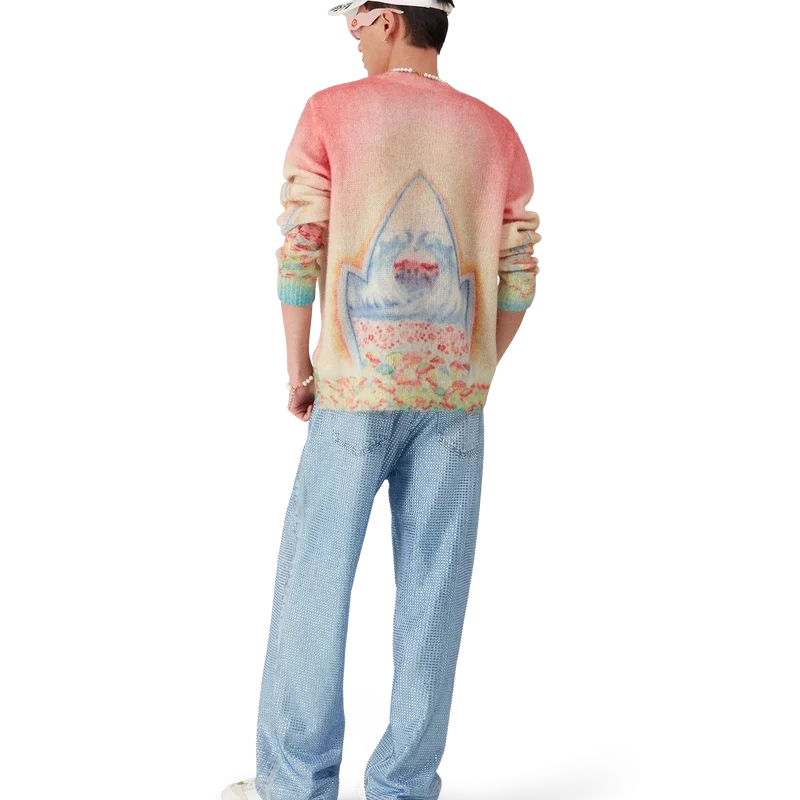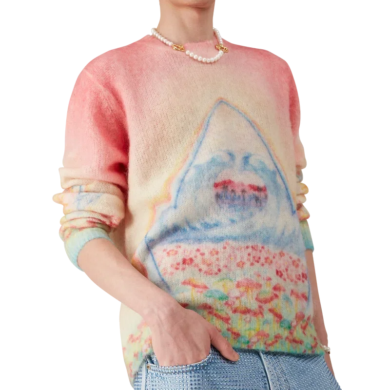 El suéter Psychedelic Nirvana es un diseño de punto de manga larga confeccionado con tejido de mezcla de lana. Se completa con un clásico cuello redondo y puños acanalados.