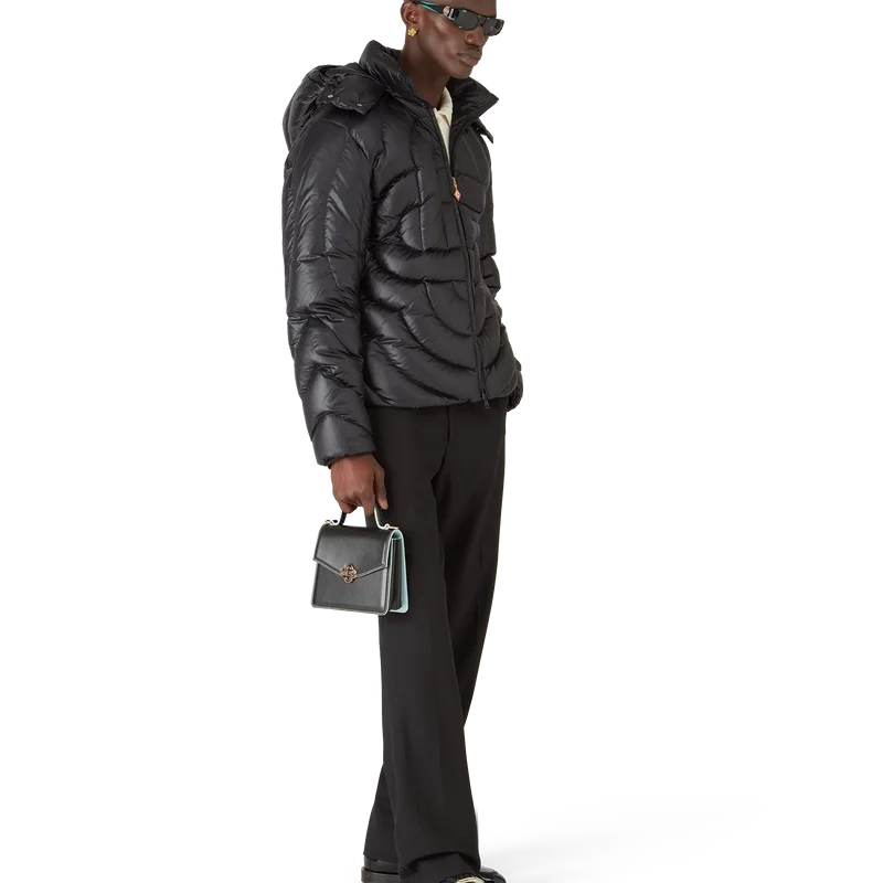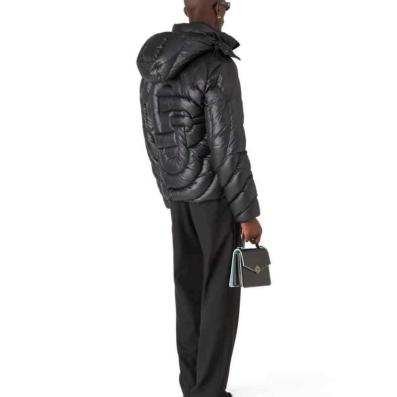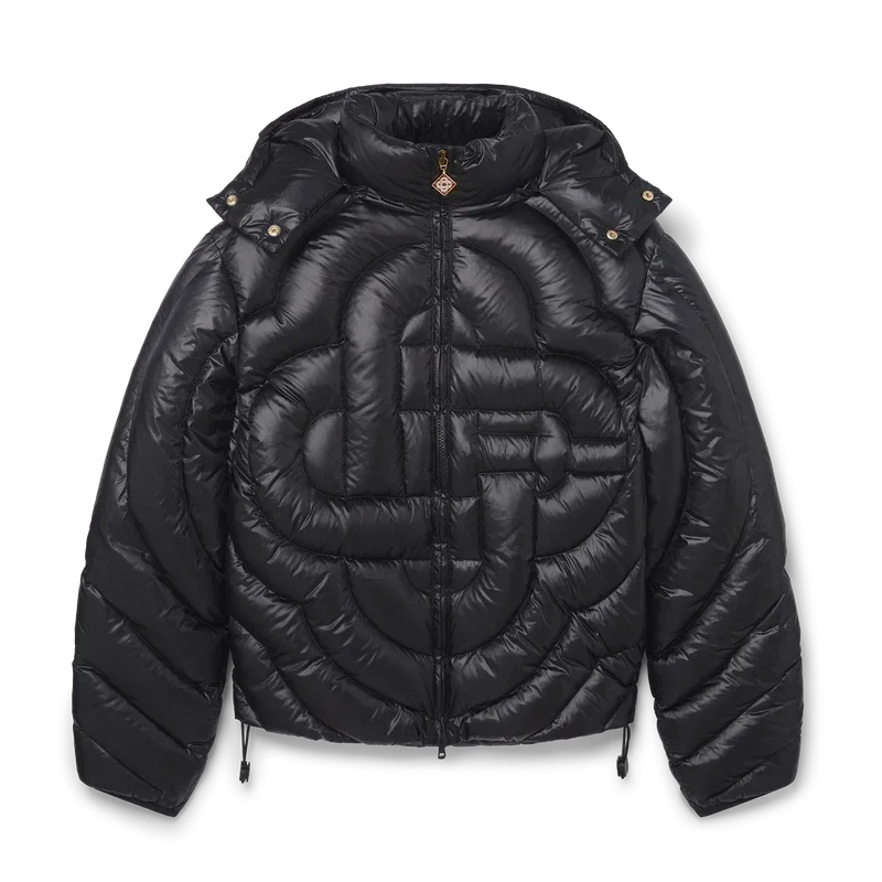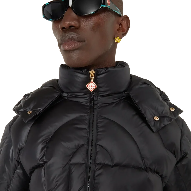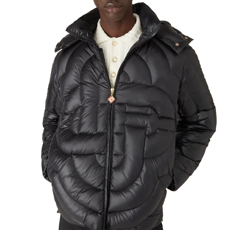 La chaqueta acolchada de nailon con Monogram es un modelo con capucha que luce el característico Diamond Monogram de la casa en la parte delantera y trasera, confeccionada en tejido acolchado. Se completa con una capucha desmontable, cierre de cremallera con una lengüeta con el emblemático logotipo de rombos, bolsillos laterales en las costuras, un bolsillo en la manga, lengüetas elásticas ajustables en el dobladillo y la capucha con tiradores entrelazados con el logotipo CC, y puños con cinta con la marca Casablanca.