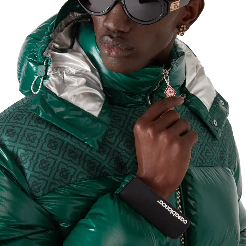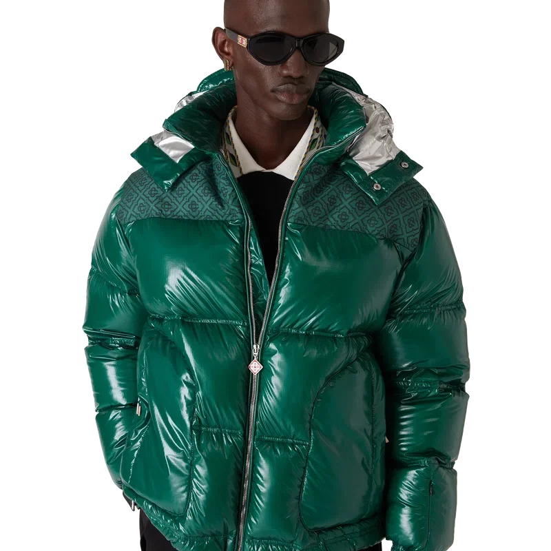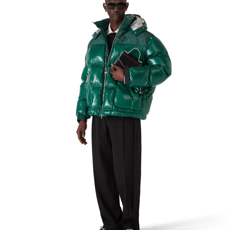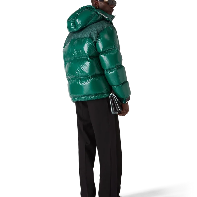 La chaqueta acolchada de nylon es una prenda de ropa de abrigo de diseño moderno y corte recto, confeccionada en tejido de nylon ripstop con relleno de plumón y un panel de jacquard con el monograma en contraste en los hombros. Se completa con una capucha con cordones y cierres con el logotipo CC, un cuello alto que proporciona calor adicional y protección contra las inclemencias del tiempo, un cierre de cremallera con la lengüeta con el logotipo de diamante característico de la casa, bolsillos delanteros con cierre de cremallera, correas ajustables con el logotipo de la marca en los puños y dobladillo y puños elásticos.