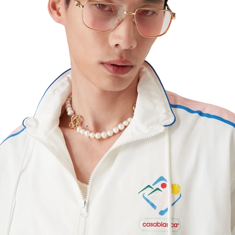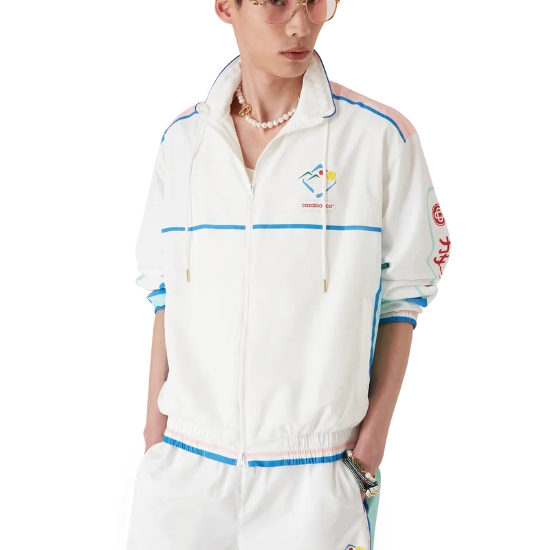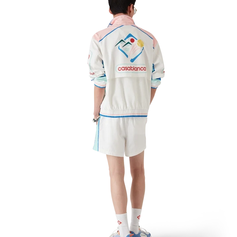 La chaqueta cortavientos Casa Sportif es una prenda deportiva confeccionada con un tejido de tafetán técnico, que luce el diseño de la temporada inspirado en Japón.