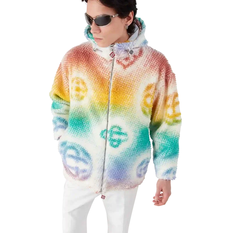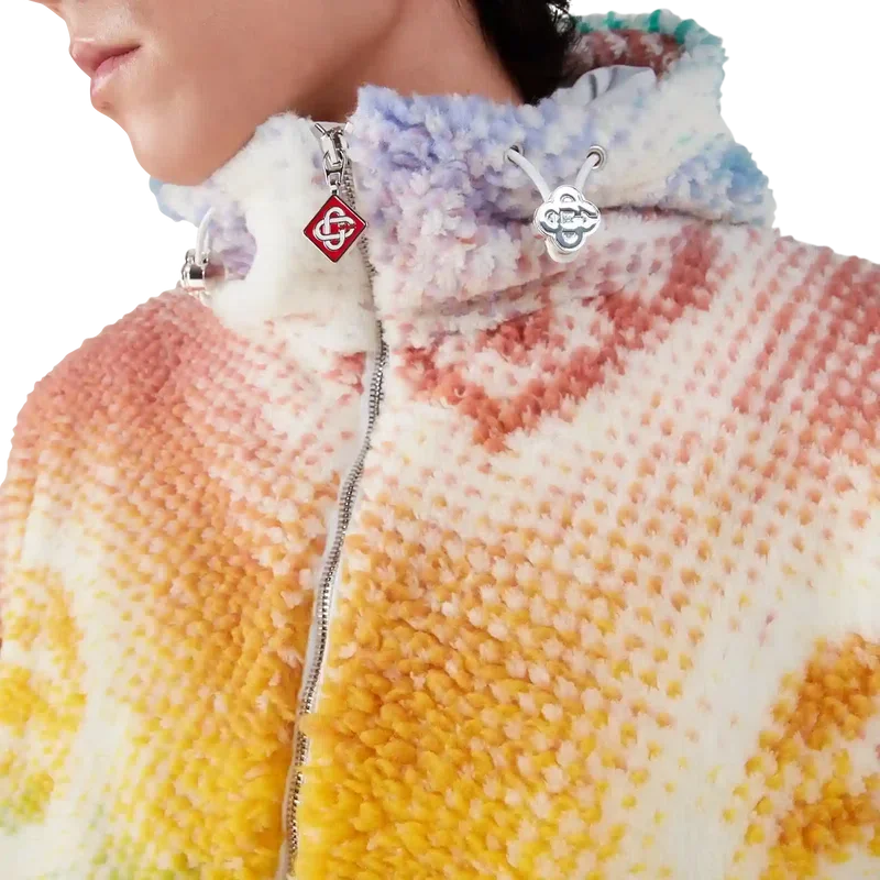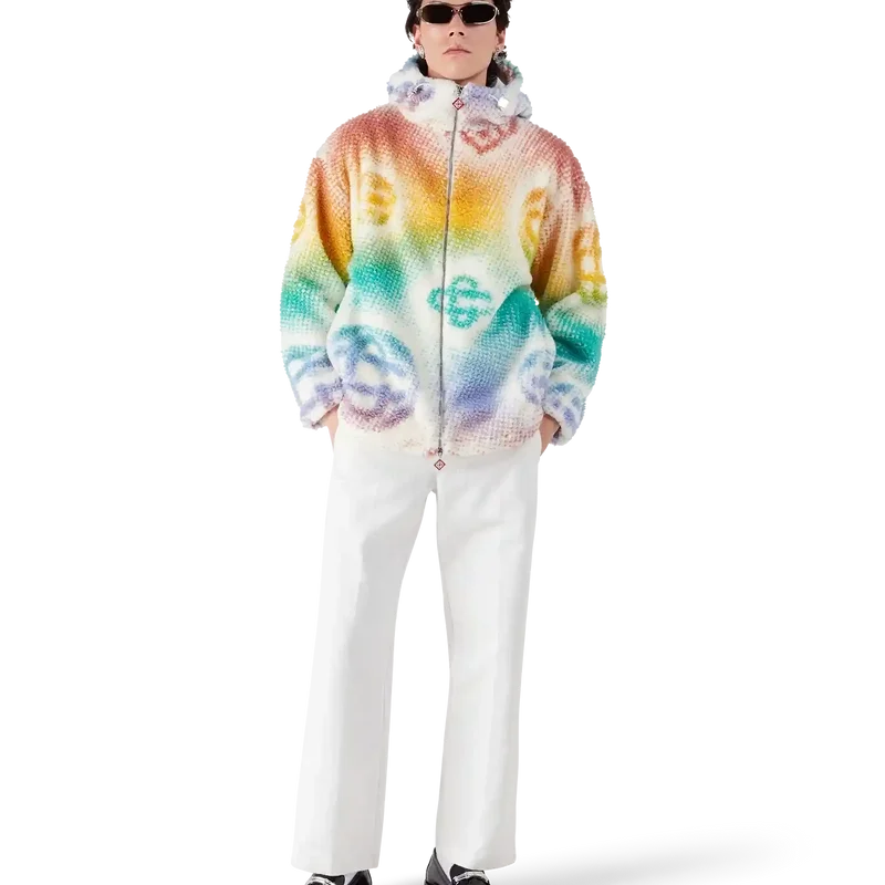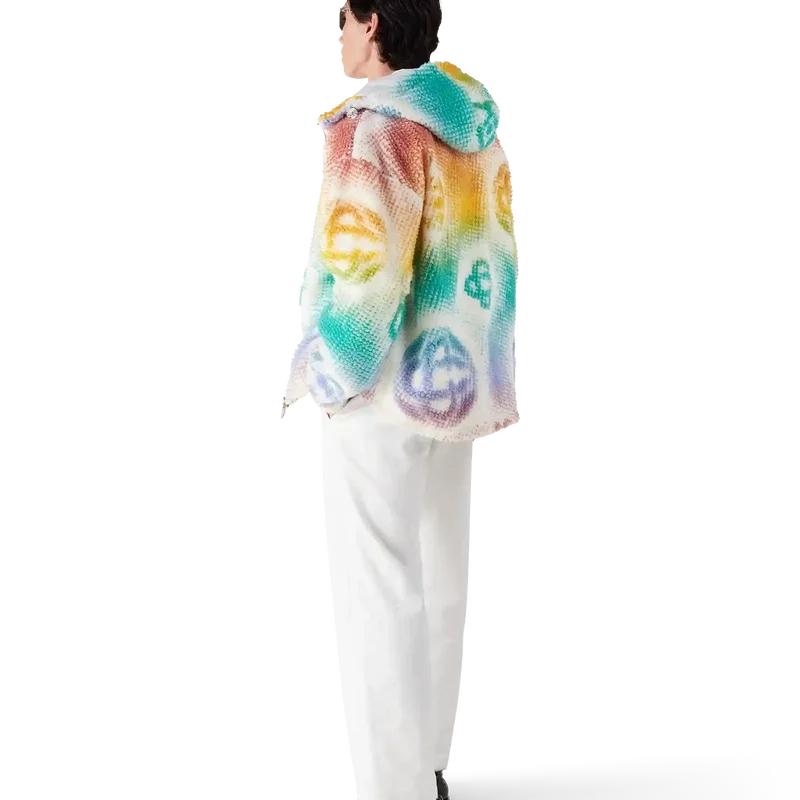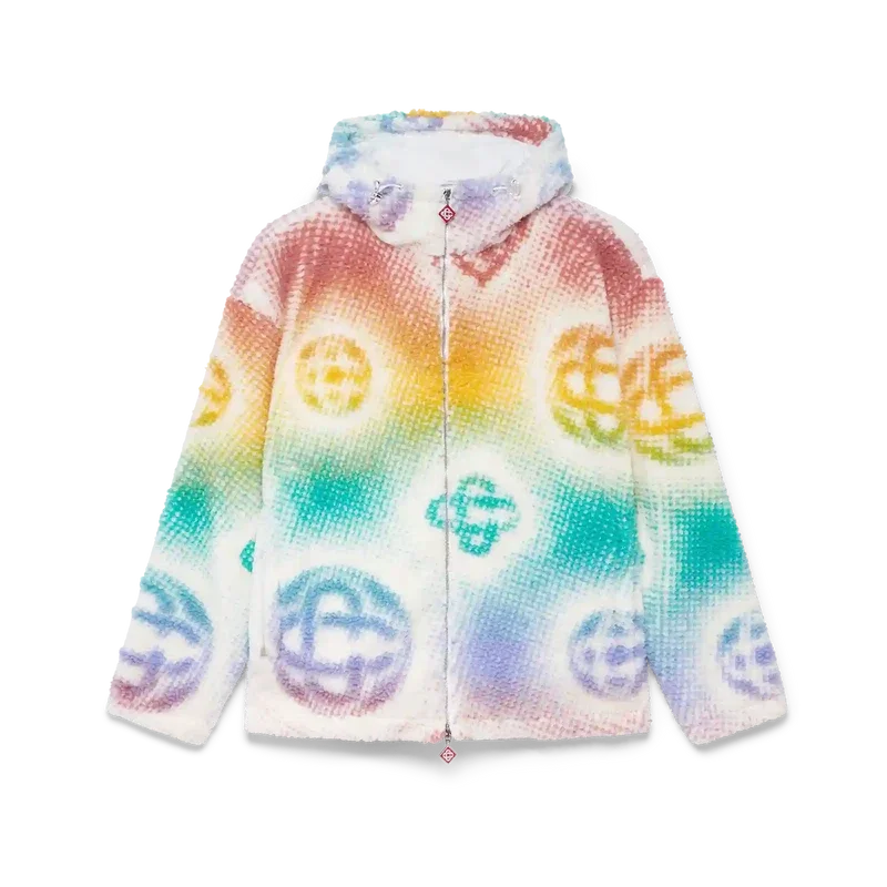 La chaqueta de felpa con monograma en semitonos es un diseño contemporáneo de manga larga con estampado integral que presenta el monograma de la casa renderizado en semitonos mediante aerografía, basándose en nuestros experimentos previos con esta técnica. Se completa con una capucha, cierre de cordón con topes entrelazados con el logotipo CC y cierre de cremallera con la lengüeta con el logotipo del Diamond Monogram característico de la casa.