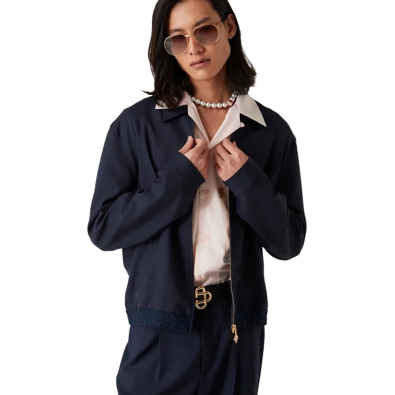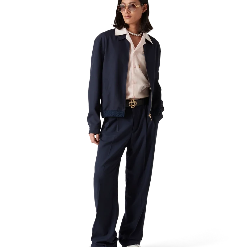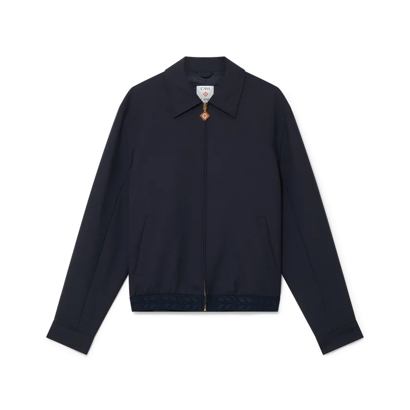 La chaqueta deportiva de sastrería de lana presenta una silueta clásica confeccionada en tejido de lana virgen y diseñada para un ajuste clásico. Acabada con cierre frontal de cremallera con la tira característica con el Diamond Monogram, cuello en punta, forro, bolsillos laterales verticales ribeteados y puños elásticos.