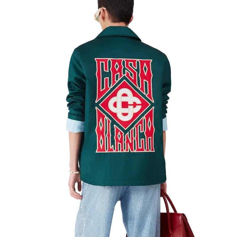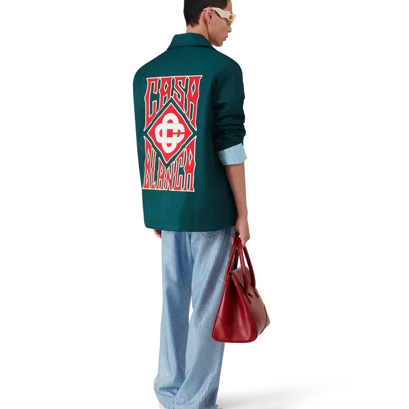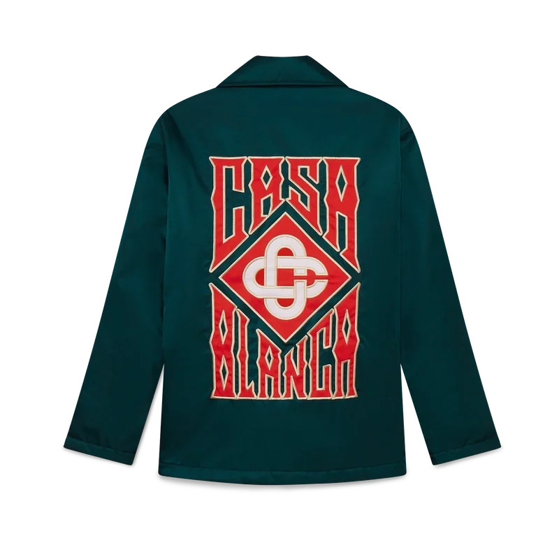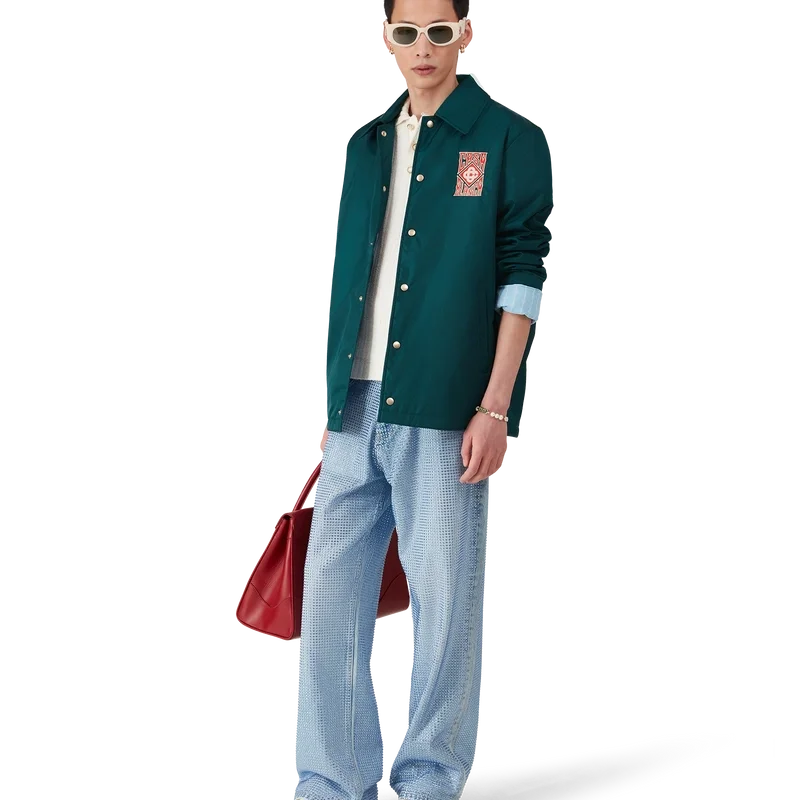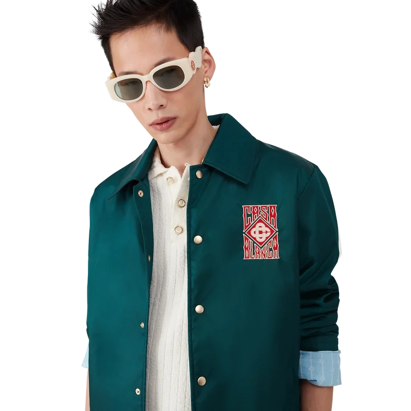 La chaqueta Stadium con logotipo gótico es un diseño ligero de manga larga confeccionado en tejido técnico y decorado con el logotipo gótico apilado de la casa. Se completa con cierre de botones a presión chapados en oro, cuello en punta, forro y bolsillos delanteros de ribete inclinado.