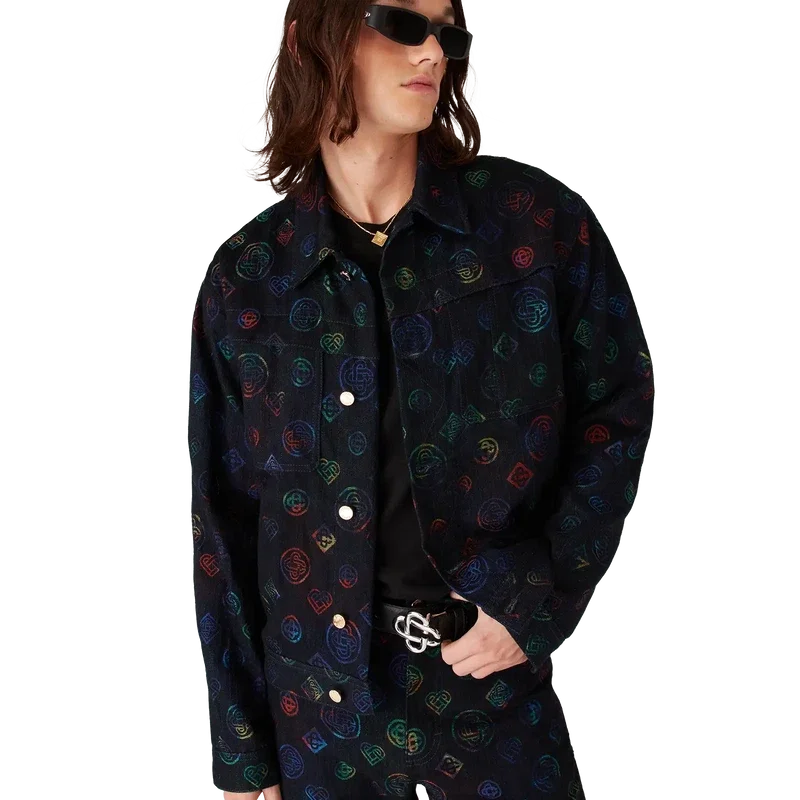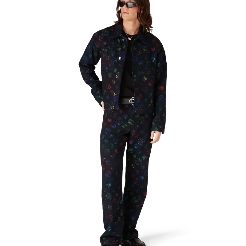 La chaqueta vaquera Heatmap es una prenda de ropa de abrigo de manga larga con el icónico estampado Monogram de la casa. Cuenta con cuello, cierre de botones, botones dorados con el logotipo de la marca, bolsillos en el pecho con abertura en diagonal y bolsillos de ojal.