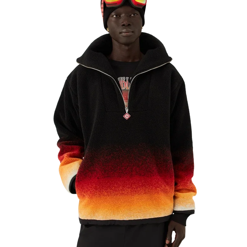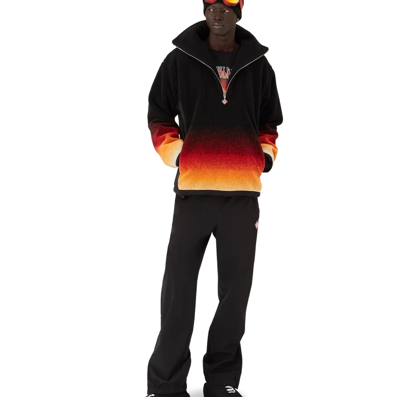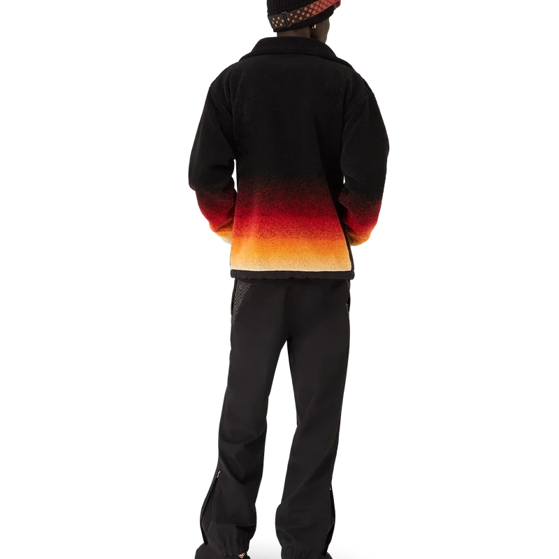 El forro polar Gradient presenta una silueta refinada confeccionada en tejido de mezcla de mohair en negro con un llamativo degradado naranja, inspirado en la legendaria nieve en polvo que cubre las regiones montañosas rurales de Japón. Inspirado en el paisaje invernal de Hokkaido, donde los pueblos se acurrucan bajo picos imponentes, el diseño combina la sofisticación deportiva y de ocio con la funcionalidad alpina.
