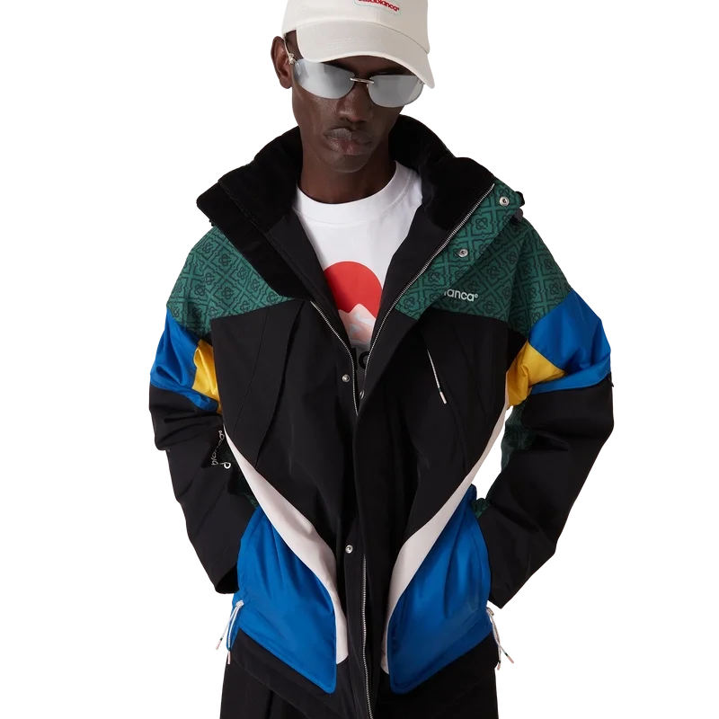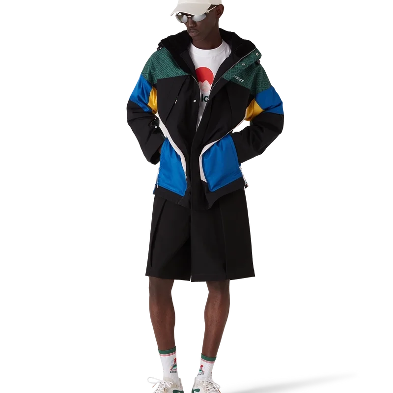 La parka Ripstop Montagne es una prenda de ropa de abrigo que presenta el parche con el logotipo de rombos característico de la casa, confeccionada en tejido ripstop. Se completa con cuello de embudo, capucha plegable con cierre de cordón, cierre de cremallera, bolsillos en el pecho, en las mangas y laterales con cierre de cremallera, y cintura y puños ajustables.