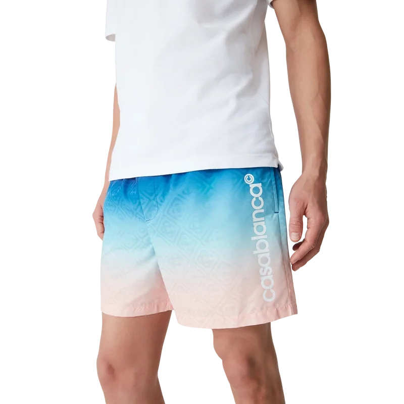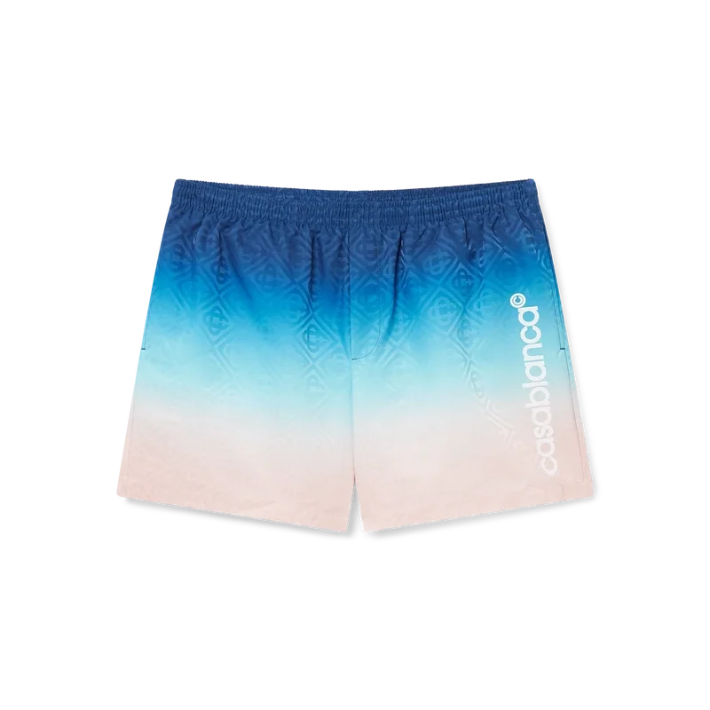 Los pantalones cortos de baño Jacquard Gradient son un modelo con estampado integral confeccionado en tejido de poliéster. Cuentan con una cintura elástica con cordón de ajuste interno, bolsillos en las costuras y forro.