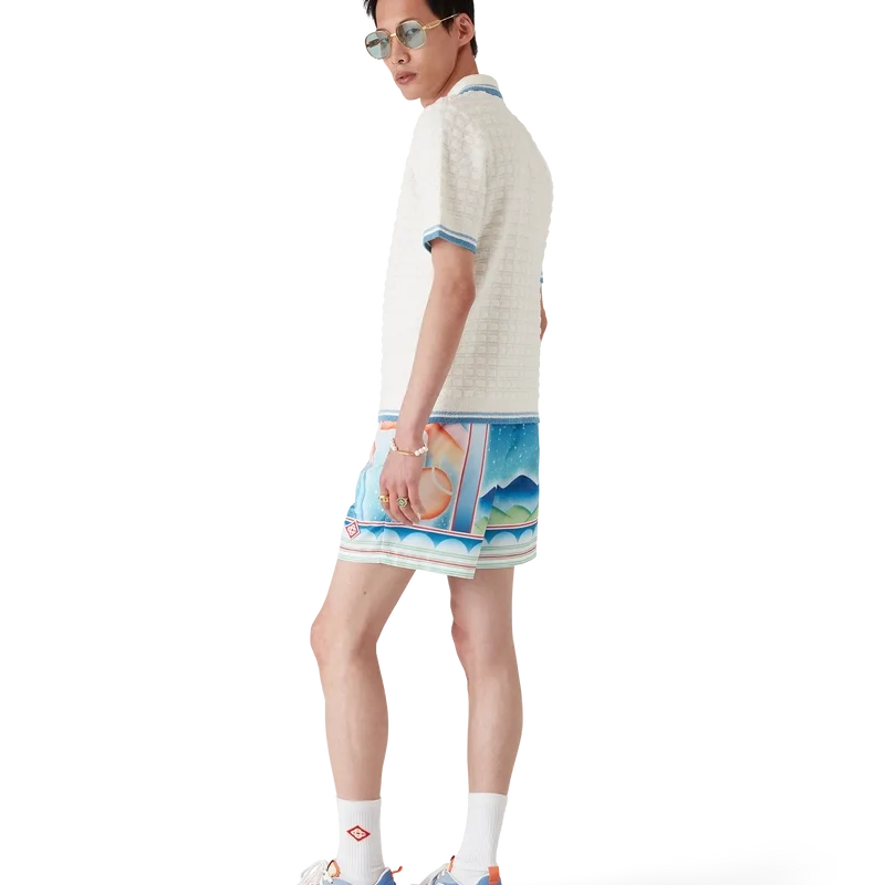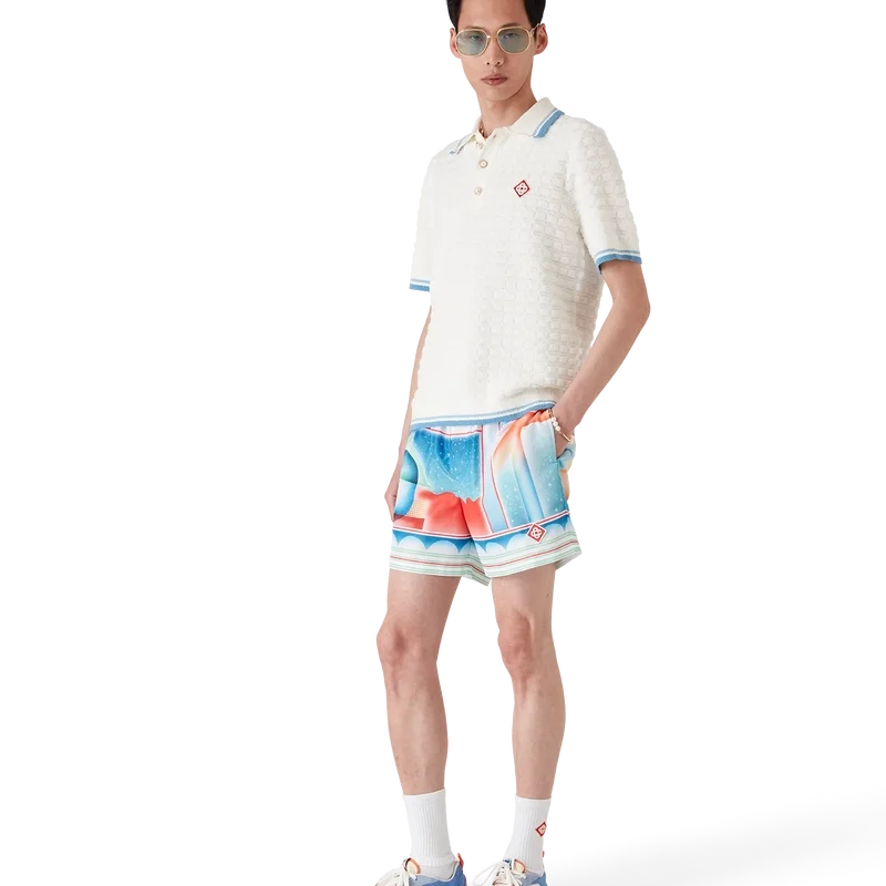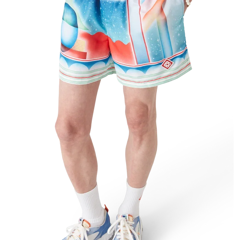 Los pantalones cortos de baño Galaxy Court presentan un diseño estampado en toda la superficie con el diseño característico de la casa, incluyendo uno de nuestros emblemas, utilizando una vez más nuestro diseño clásico pero con una mezcla de elementos de temporada, incorporando el tema del tenis a la colección, confeccionados con tejido técnico de baño.