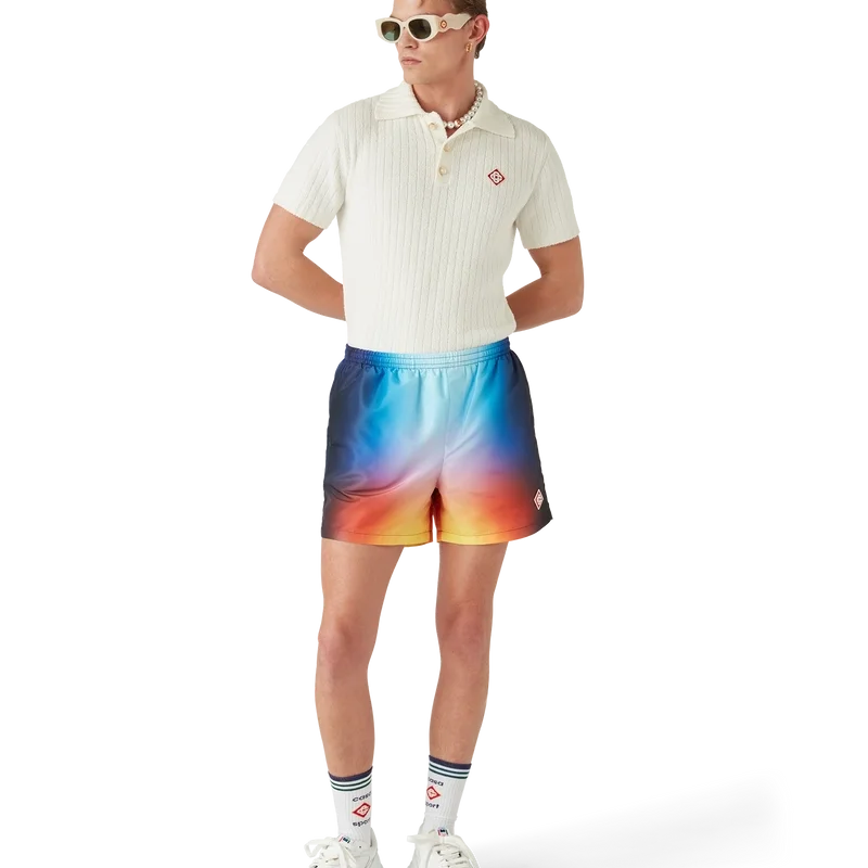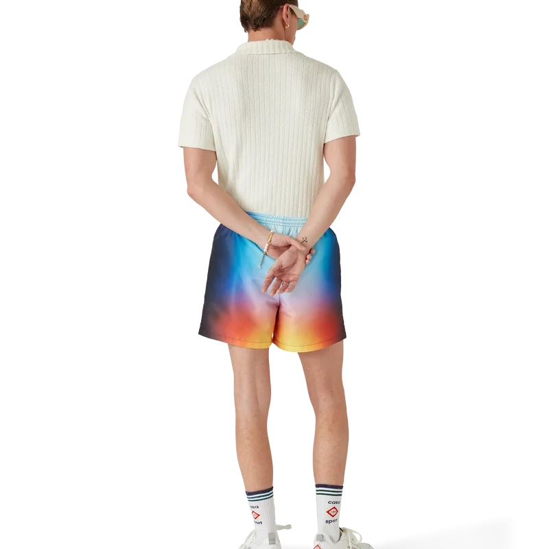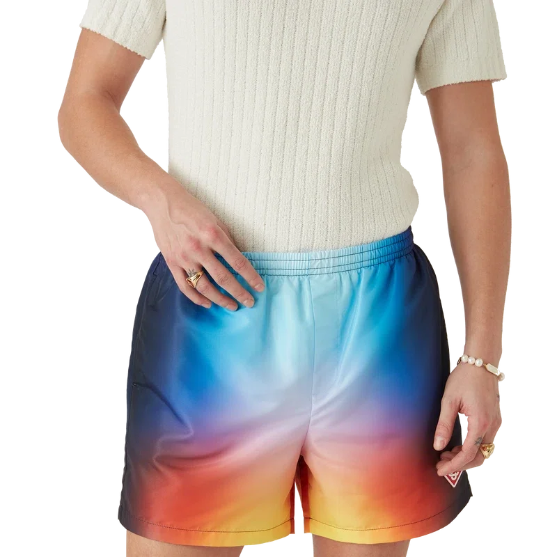 Los pantalones cortos de baño Tie Dye presentan un diseño estampado con los colores degradados de la temporada y el emblemático logotipo de diamante, confeccionados en tejido Tie-Dye. Cuentan con una cintura elástica, cierre con cordón interno, bolsillos laterales en las costuras, forro y un bolsillo interior.