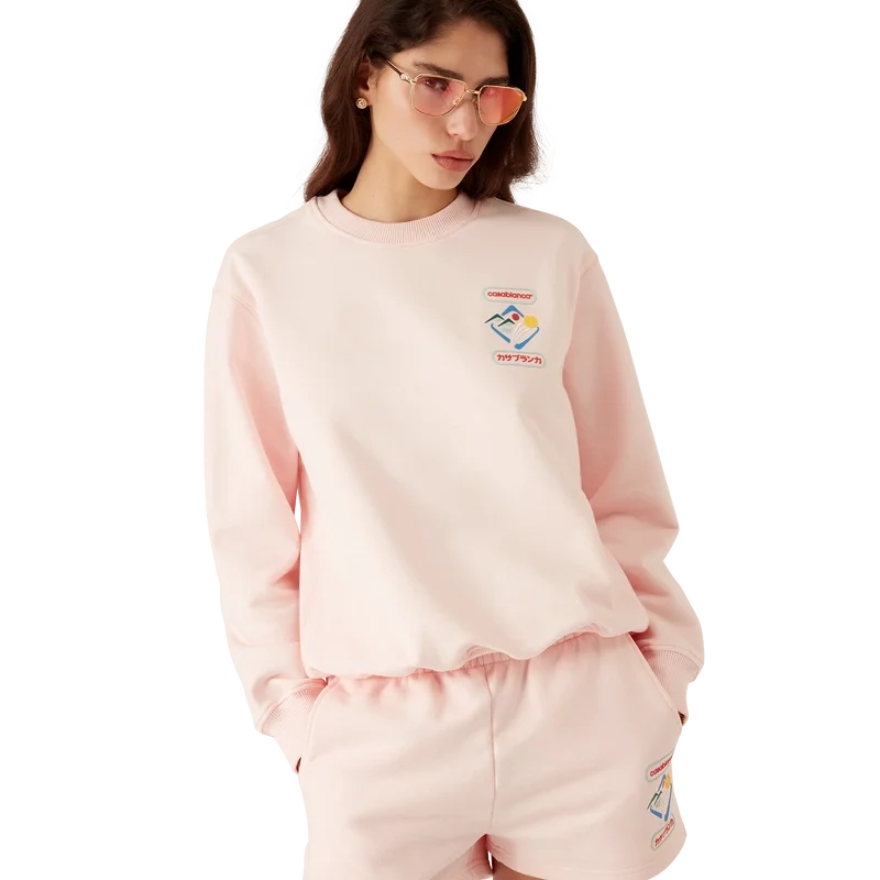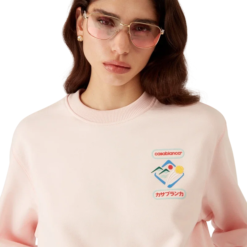 La sudadera Casablanca Montagne Sportif es un diseño de manga larga confeccionado en tejido de algodón orgánico con el diseño de temporada de la casa. Se completa con un cuello redondo clásico, paneles laterales acanalados y puños y dobladillo acanalados.