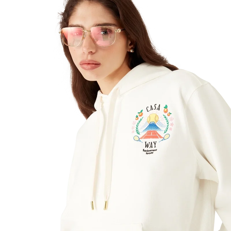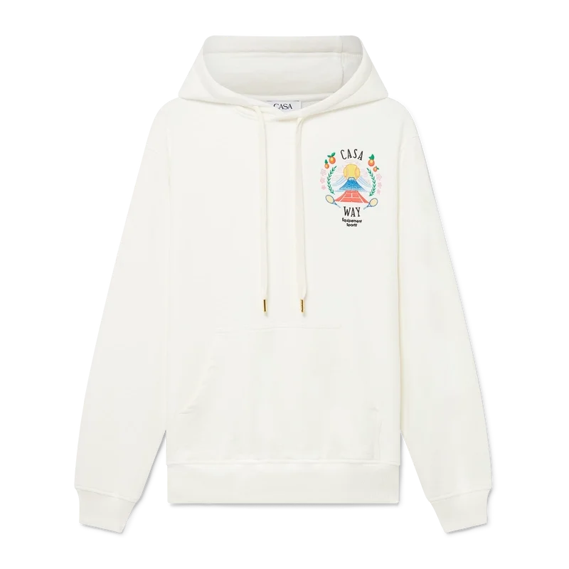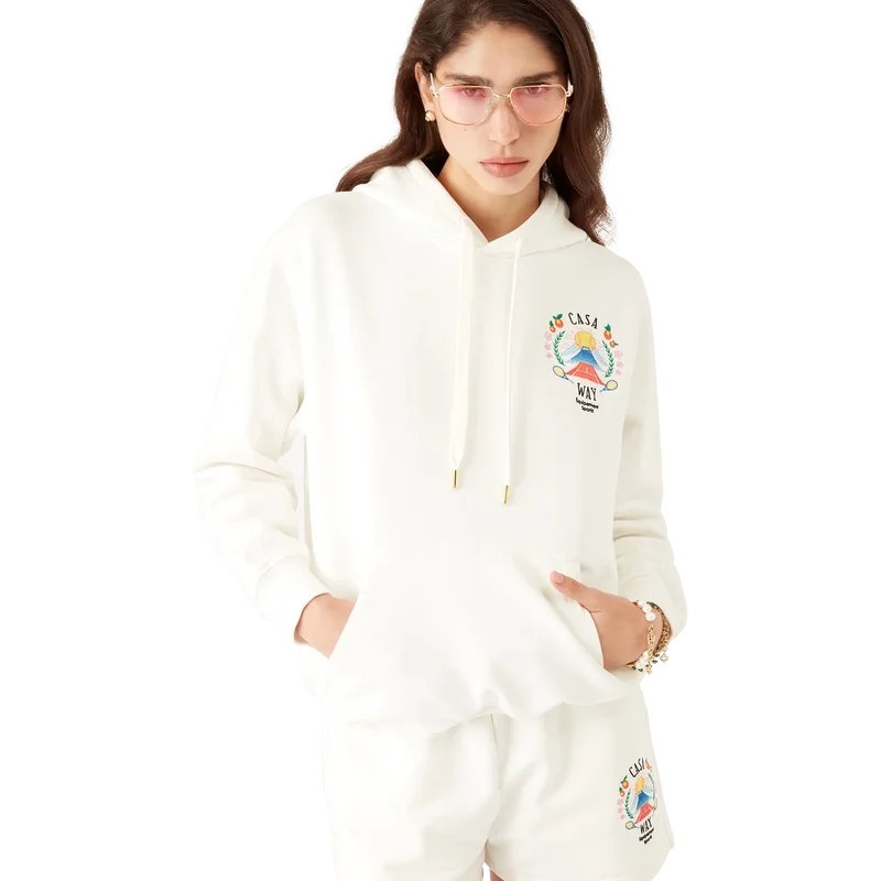 La sudadera con capucha Casa Way Mountain es un diseño de manga larga confeccionado en tejido de algodón orgánico y presenta el diseño de la casa reinterpretado para esta temporada. Acabada con capucha con cierre de cordón, bolsillo canguro delantero, puños y dobladillo acanalados.