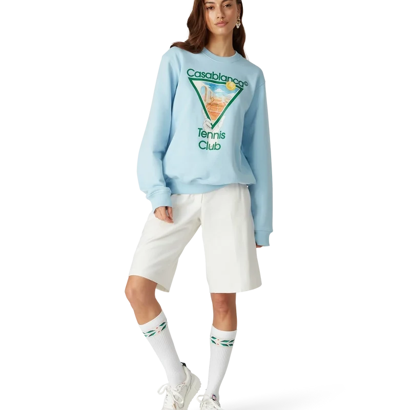 La sudadera Metaphysical Tennis Icon es un diseño de manga larga que presenta el diseño artístico de temporada de la casa, inspirado en el estudio continuo de la belleza clásica y el encanto contemporáneo de la Antigua Grecia. Se completa con un cuello redondo clásico, cuello, puños y dobladillo acanalados.