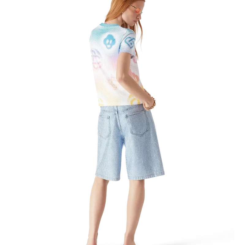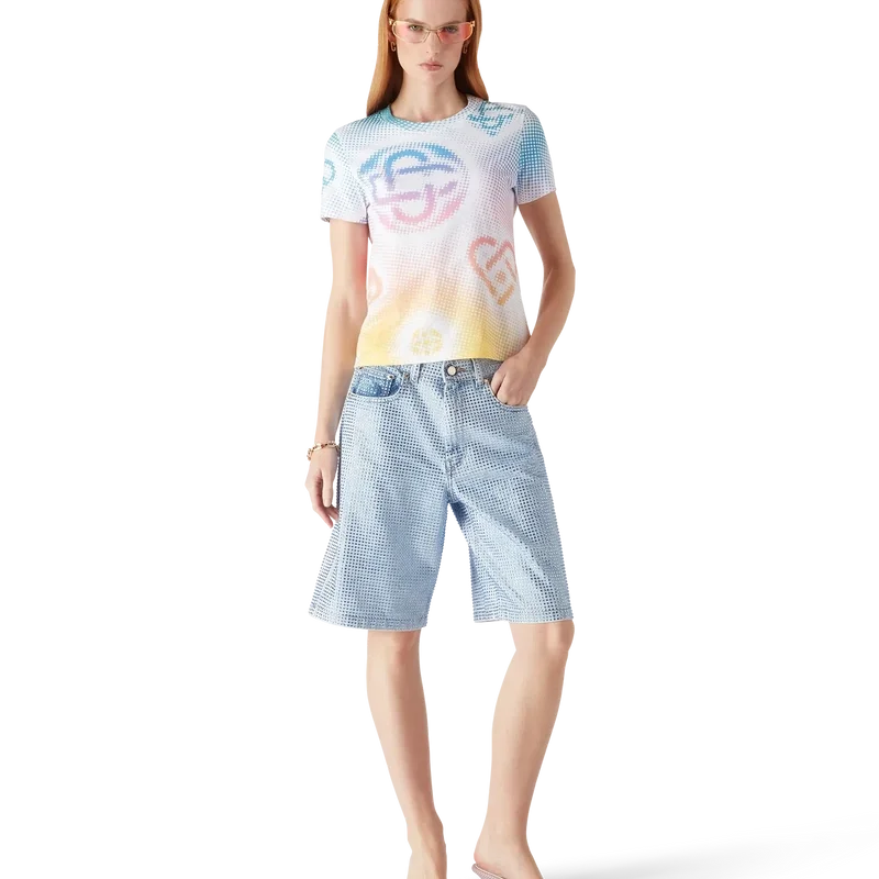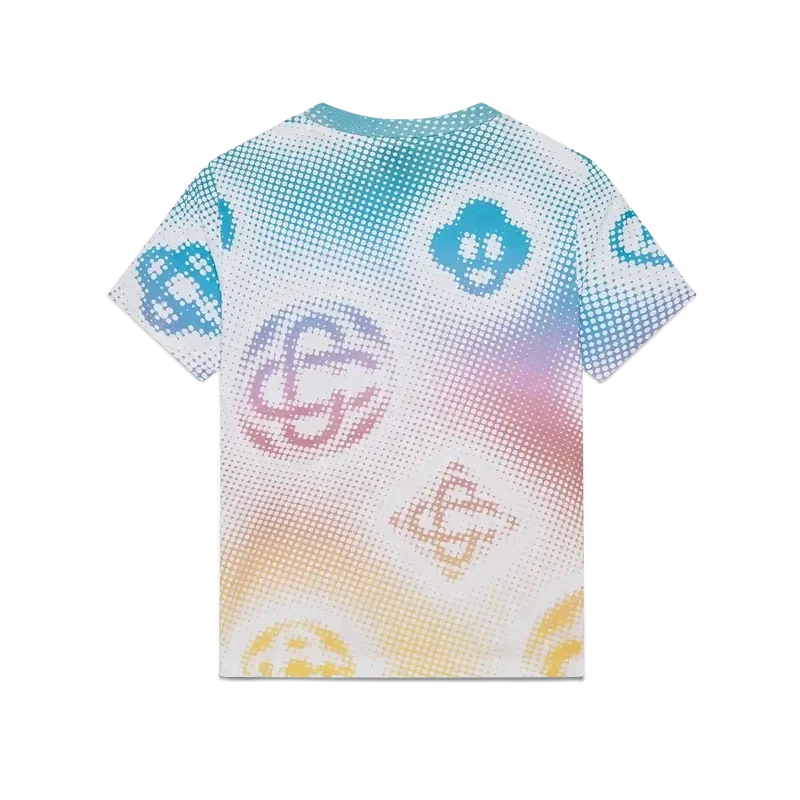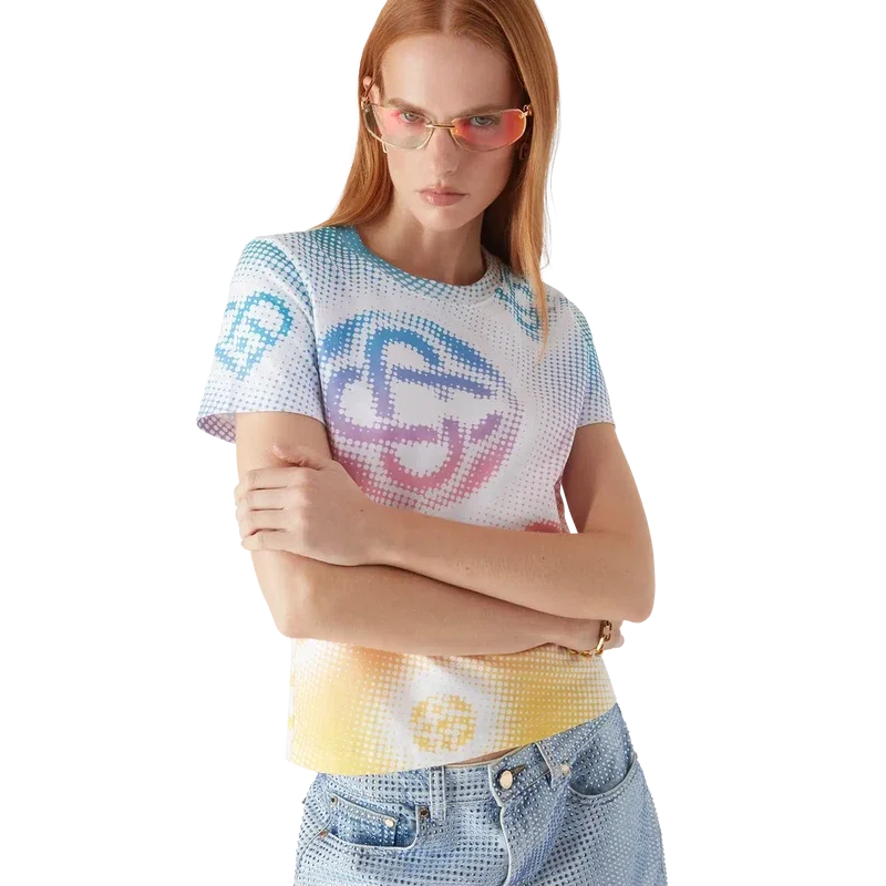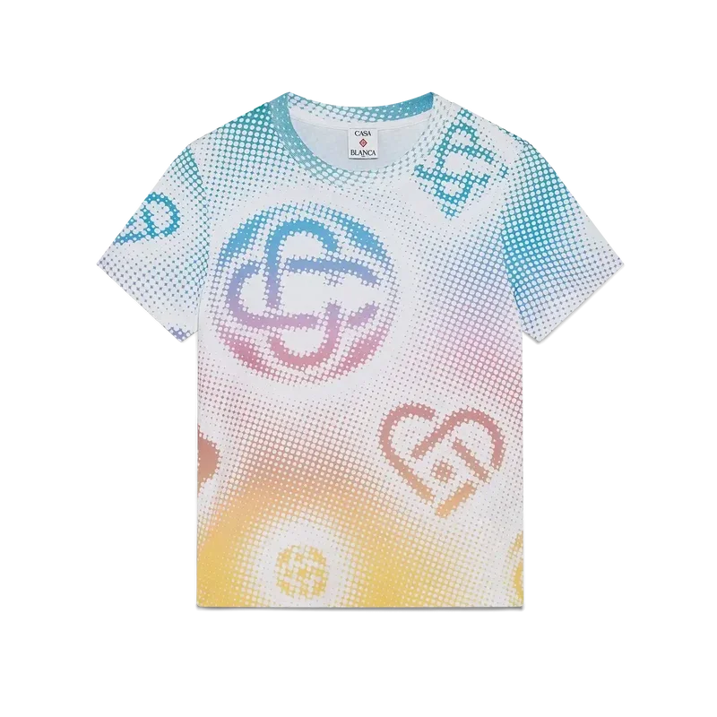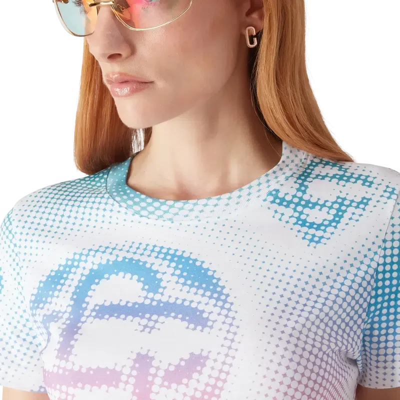 La camiseta ajustada con logo en semitonos presenta un diseño estampado multicolor en toda la prenda con el logo de la casa en un gráfico refinado. Se completa con un clásico cuello redondo acanalado.