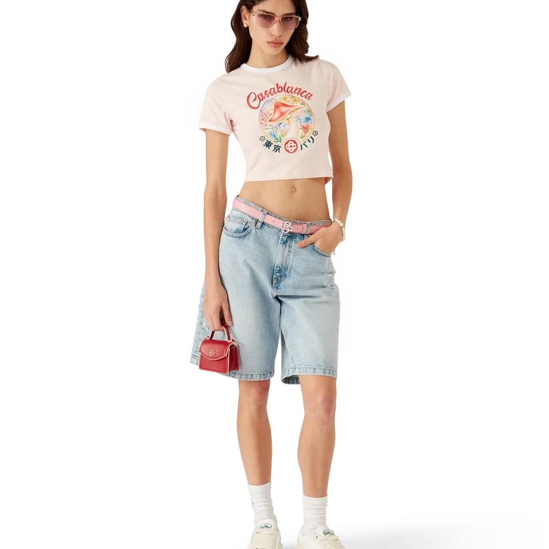 La camiseta corta con emblema de seta es un diseño de manga corta que presenta uno de los elementos de diseño característicos de la casa —la seta— confeccionado en tejido de algodón Pima. Se completa con un cuello redondo clásico. Diseñada para quedar por encima del ombligo.