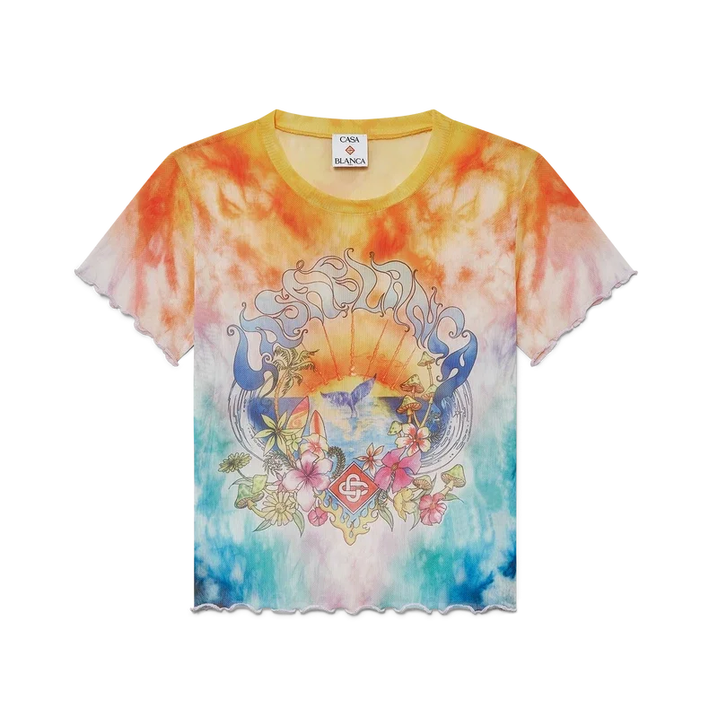La camiseta de malla teñida Surf Trip es un diseño estampado de manga corta confeccionado en tejido de algodón orgánico y presenta un diseño exclusivo inspirado en la cultura surfera vintage de Malibú, utilizando tipografía de esa época sobre un fondo teñido que hace referencia a la cultura hippie. Se completa con un cuello redondo clásico.
