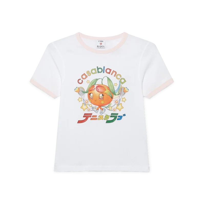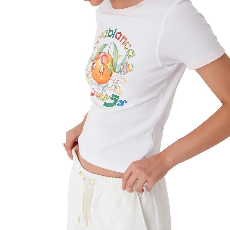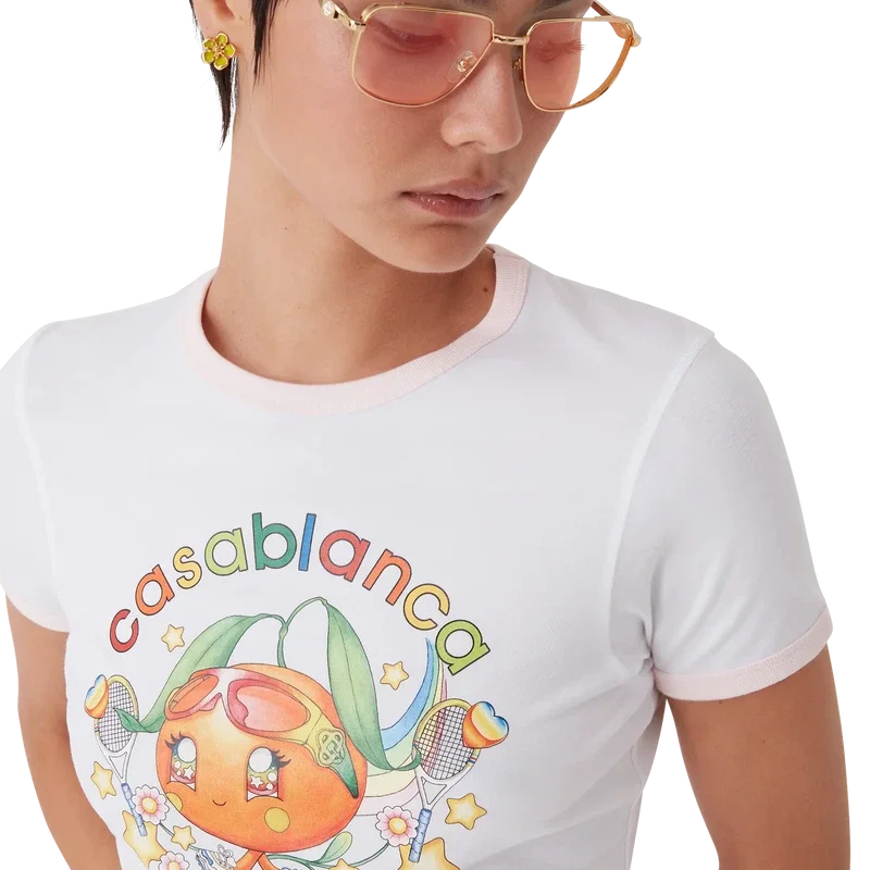 La camiseta Orange Mascot Ringer es un diseño de manga corta que presenta el diseño de esta temporada de este personaje, diseñado como una naranja, otra figura clave en nuestro universo, con accesorios de Casa, gafas y zapatillas. Se completa con un clásico cuello redondo.