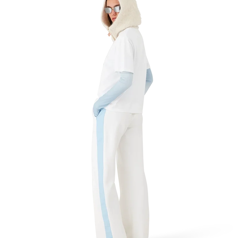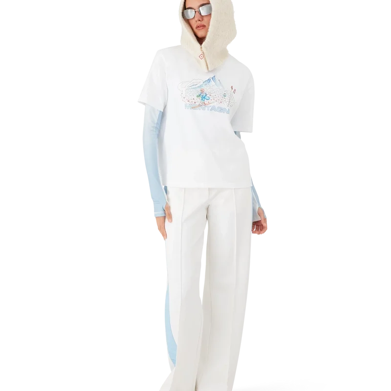 La camiseta Ski es un refinado diseño de Apras-Sport confeccionado en jersey de algodón orgánico en color blanco, inspirado en la pureza minimalista de la campiña japonesa cubierta de nieve. Basándose en la belleza discreta de la estética tradicional de los pueblos, donde las líneas limpias y los materiales naturales definen un diseño atemporal, el estilo encarna los códigos del deporte y el ocio.