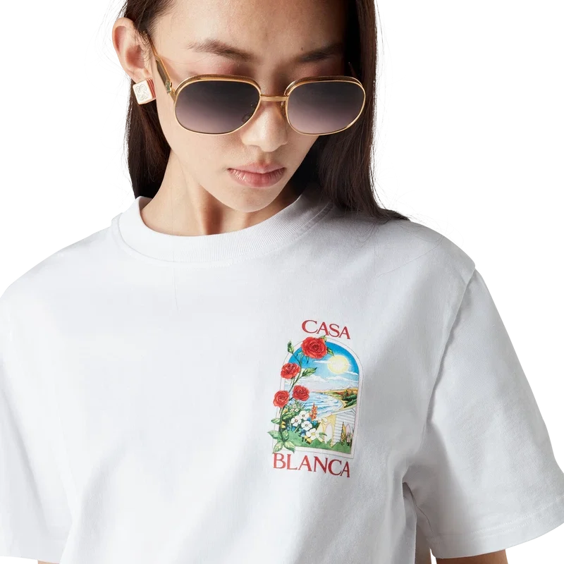La camiseta La Days es un diseño estampado de manga corta confeccionado en tejido de algodón orgánico y presenta un diseño exclusivo que representa una ventana al paisaje diurno de Malibú. Se completa con un cuello redondo clásico.