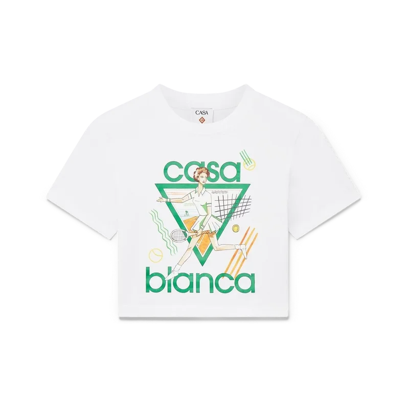 La camiseta para bebé Tennis Girl es un diseño estampado de manga corta confeccionado en tejido de mezcla de algodón, con el diseño de temporada de la casa inspirado en el estudio continuo de la belleza clásica y el encanto contemporáneo de la Antigua Grecia. Se completa con un cuello redondo clásico, diseñado para quedar por encima del ombligo.