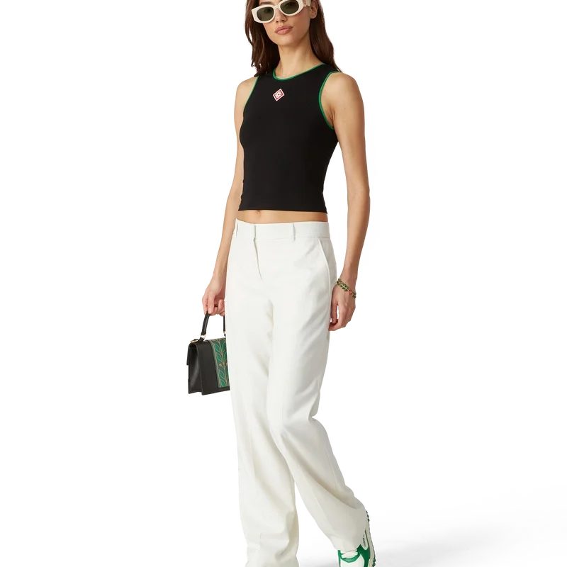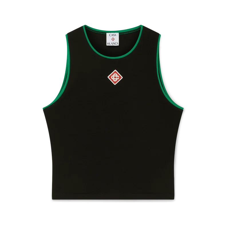 La camiseta sin mangas con logotipo de diamante es un diseño corto sin mangas confeccionado en tejido de algodón. Se completa con el logotipo de diamante característico de la casa, detalles de bordes verdes y un cuello redondo clásico. Diseñada para quedar por encima del ombligo.