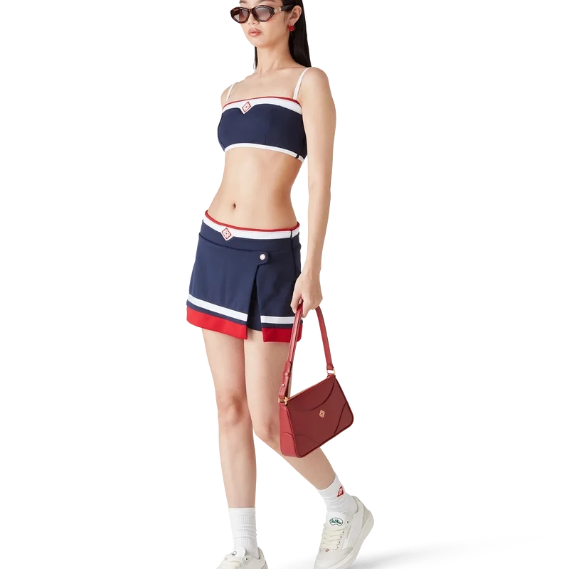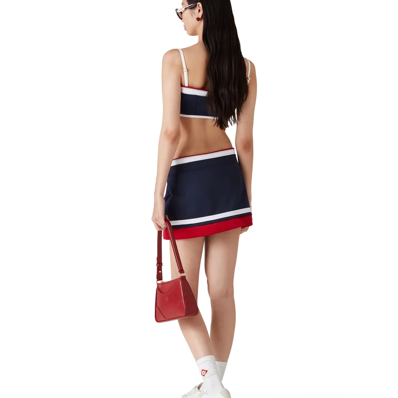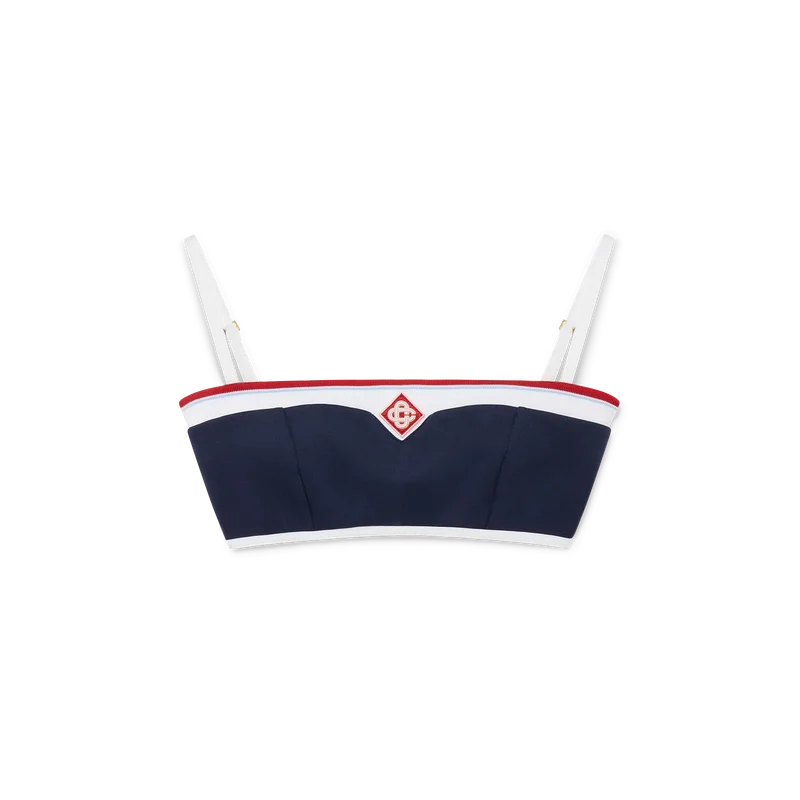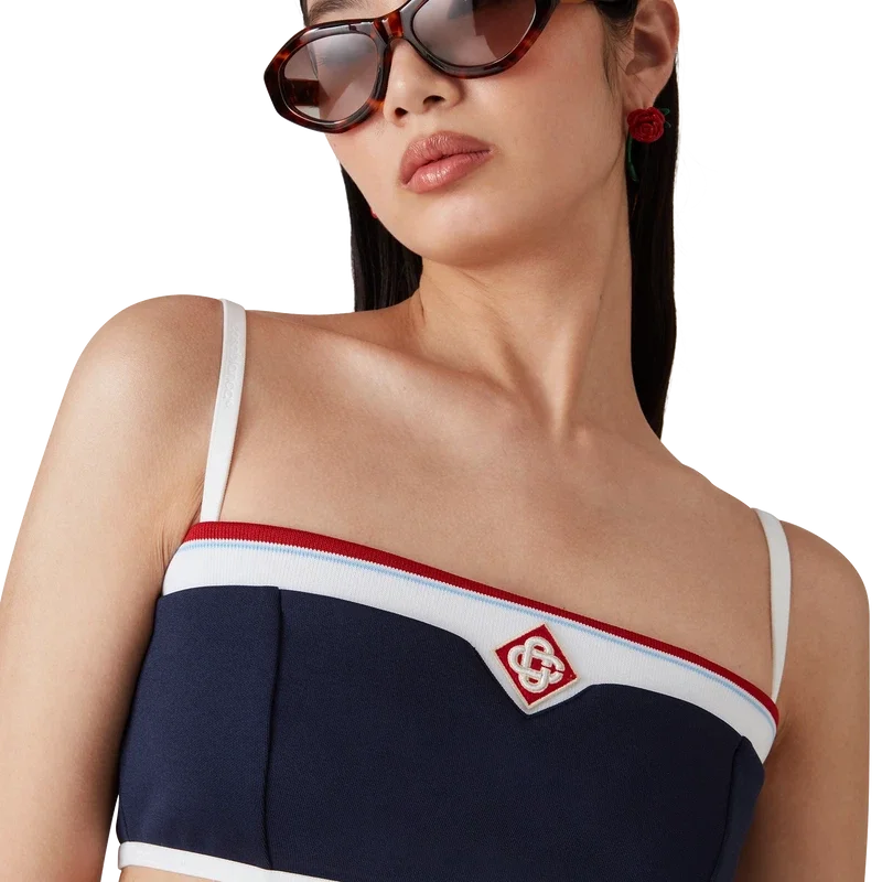 El bralette de tricot es un diseño sin mangas inspirado en la ropa deportiva que presenta el Diamond Monogram característico de la casa en el centro. Esta prenda está confeccionada en tejido de tricot y cuenta con tirantes finos y detalles de bordes rayados.